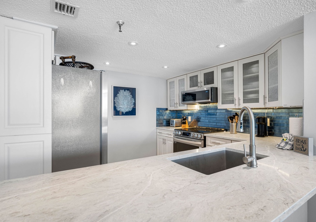 We loved the condo. It was very clean and modern. The only downside is it’s so new and light (white) colored that I was constantly worried about dirt staining something. The kitchen was well supplied. I do wish it had had a Keurig because we are spoiled, but made do with the traditional coffee pot. The elevators and trash disposal could not have been in a better location as they are right out the front door. The balcony offers a beautiful view of the marina with easy access when we rented a boat for the day. The beach is an easy walk and lots of stores and restaurants to choose from. We also rented a golf cart one day to access other areas so we didn’t have to take our rental car. All in all we loved our stay and would highly recommend it.- Reviewed On: 5/23/2023