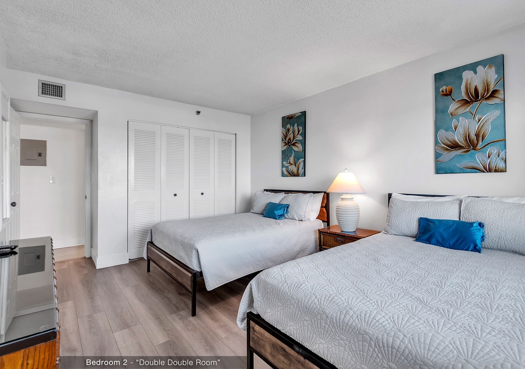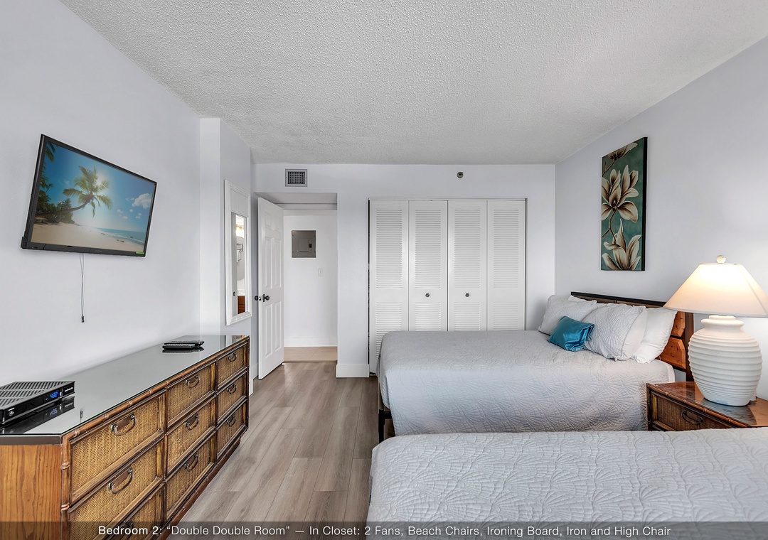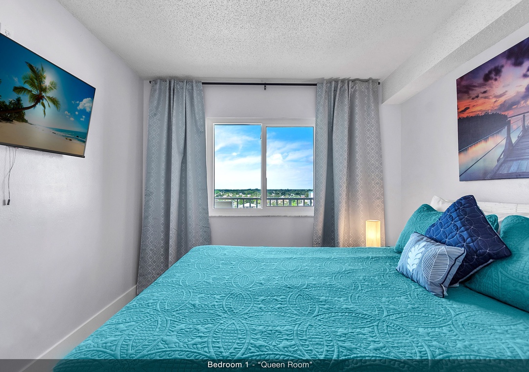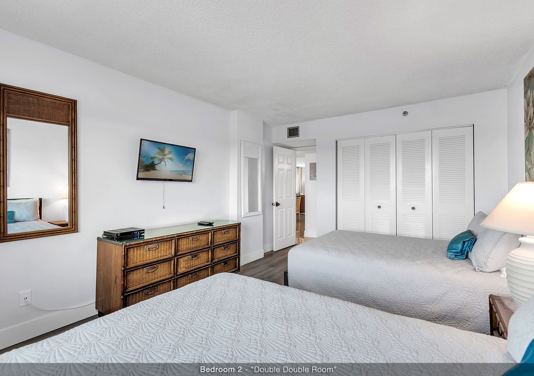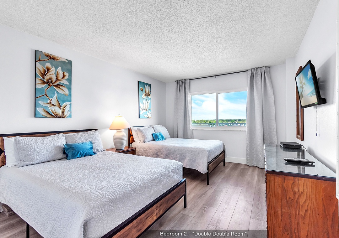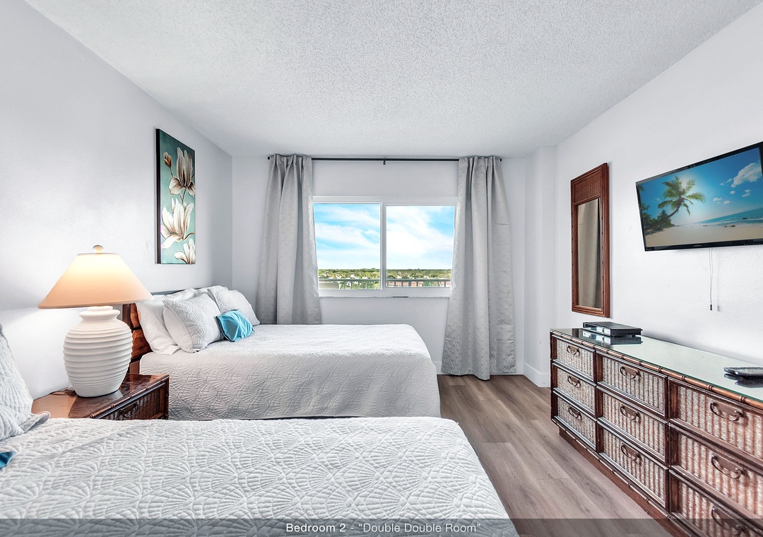 Additional 2 bedrooms one with 2 doubles and the other with a queen bed, each bedroom with a smart TV’s. Picture windows with the Intracoastal view.
