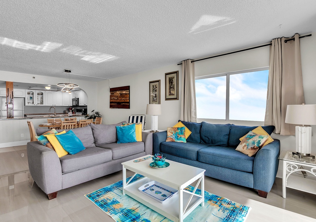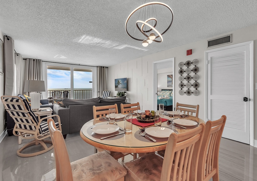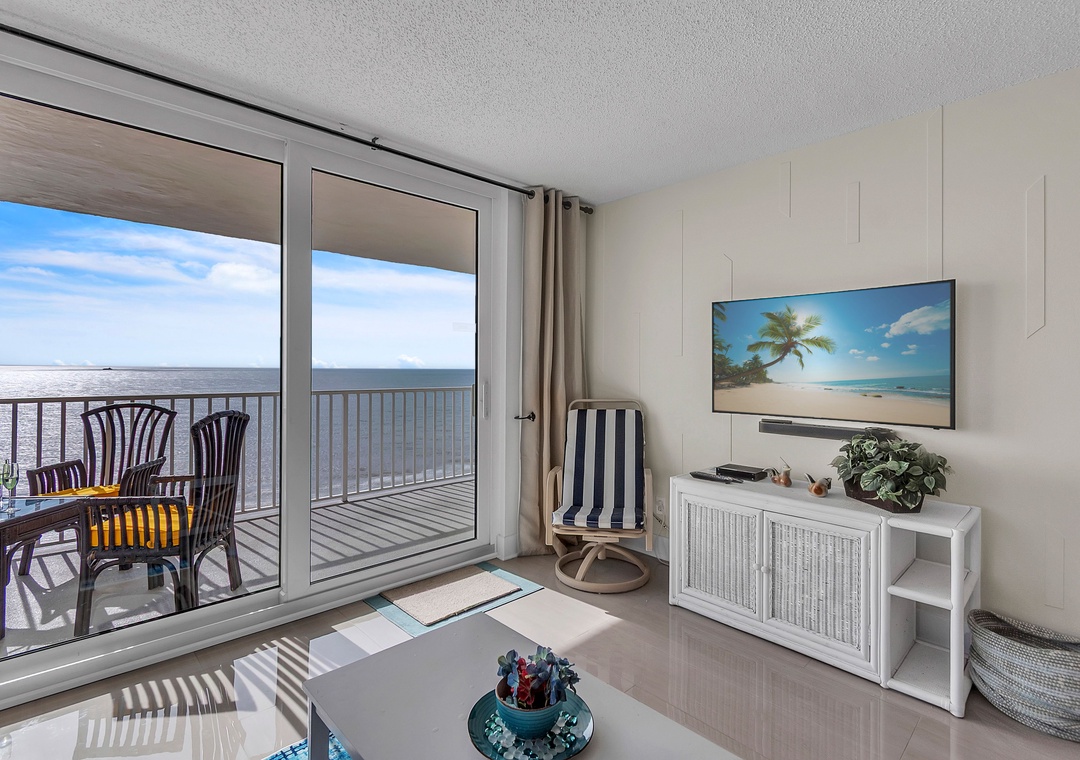Perched on the 9th floor, you'll enjoy a unique, unobstructed, vantage point that captures the best of both worlds. Wake up to breathtaking sunrises over the Intracoastal Waterway and end your day with unforgettable sunsets over the Gulf of Mexico. A vacation rental that’s a daily backdrop of beauty from dawn to dusk. You could even catch a view of the Dolphins and in the cooler months occasionally, manatee as they make their way to the Intracoastal.