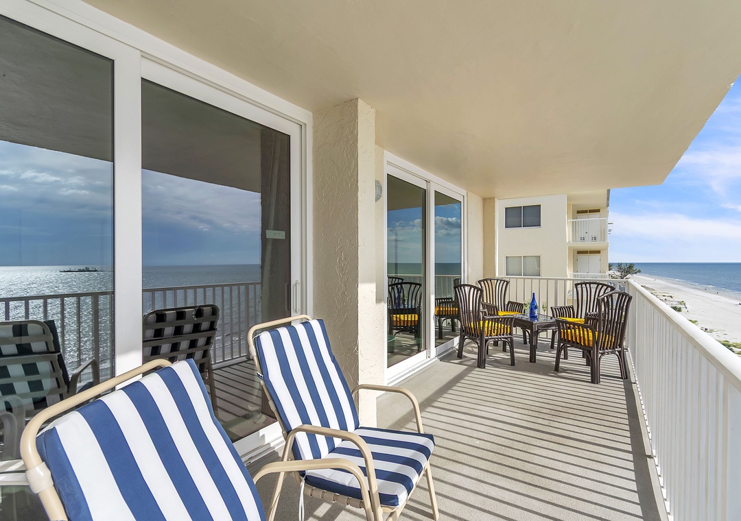 30’ balcony with enough patio chairs for the whole family to enjoy together