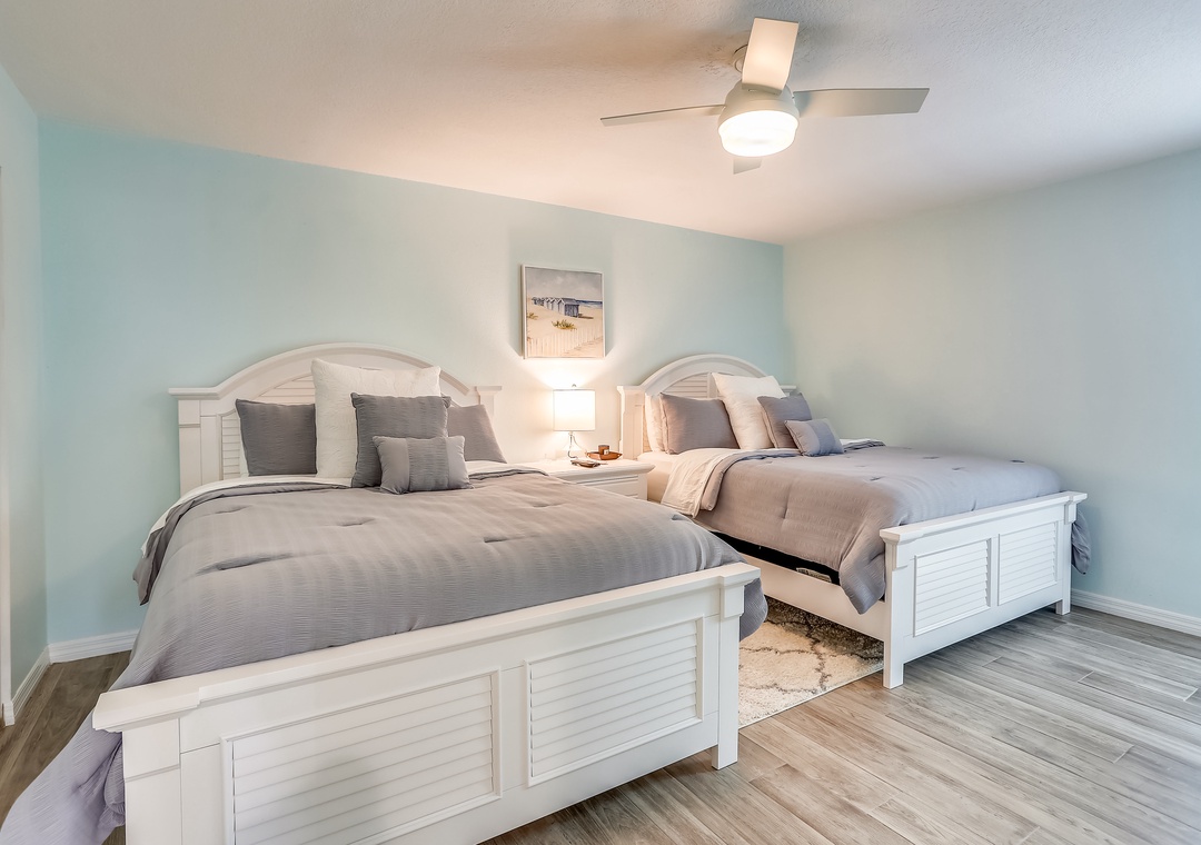 Bedroom 2 - 2 Queen sized beds with a 55” Smart TV