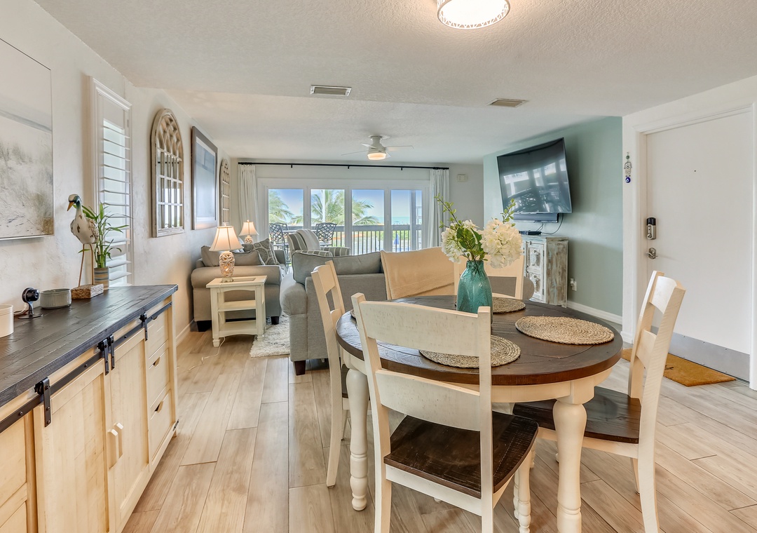 We rented the condo for an anniversary vacation with our son, daughter in law and new grandson. A few local friends stopped by. The space was perfect for socializing and finding quiet space. The decks are great and the view of the beach relaxing. The kitchen had updated appliances -- and it would have been handy to to have the manuals for the cooktop and microwave. We would stay there again.- Reviewed On: 4/16/2024