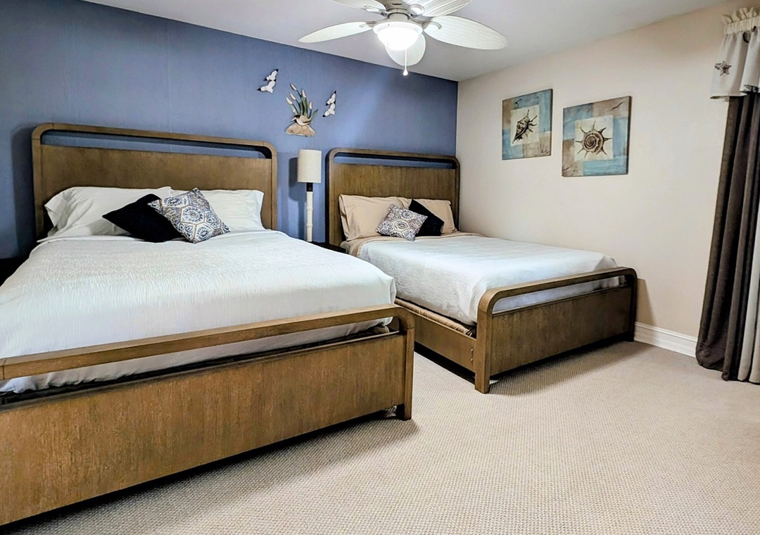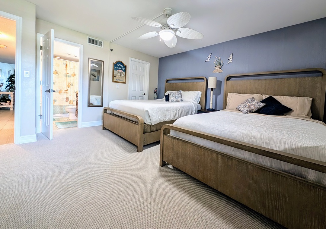 With two queen-size beds, this condo accommodates up to four guests comfortably, making it ideal for couples, friends, or small families. The bathroom features dual entry, including a pocket door for added convenience and easy accessibility. The newly installed double-hung windows are designed to block out the heat of the sun and reduce outdoor noise, providing a peaceful and comfortable retreat.