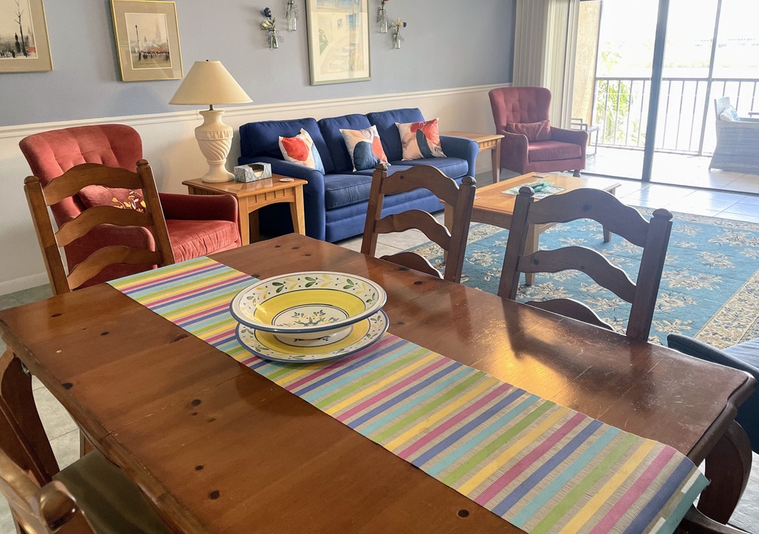 This spacious condo features two bedrooms and two bathrooms, offering everything you need for a comfortable stay. The fully equipped kitchen comes with all the dishes, utensils, and small appliances you could ever need. In the living room, enjoy cozy seating with a beautiful view of the Intercoastal, a flat-screen TV with extended cable, and Wi-Fi for your entertainment. The master bedroom boasts a king-size bed, while the guest bedroom has two full-size beds, comfortably accommodating up to six guests. For your convenience, a washer and dryer are included inside the condo.