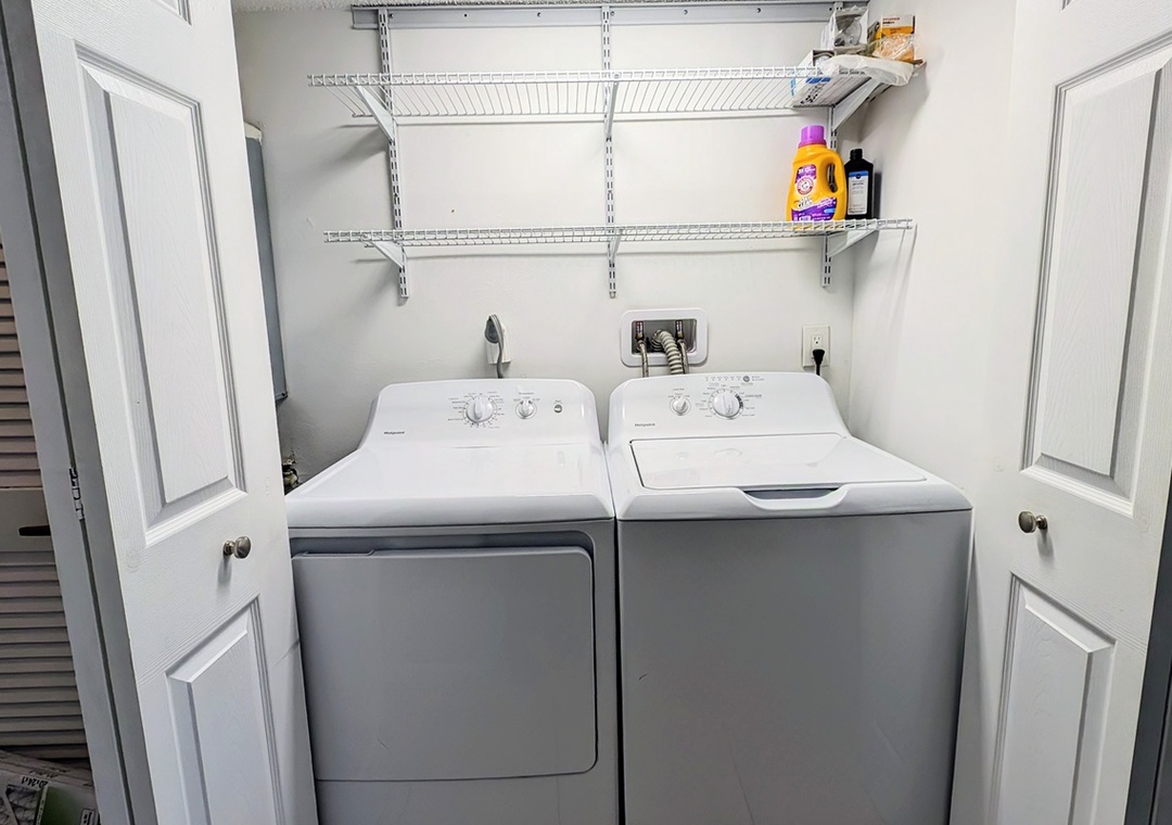 For added convenience, Coastal Charm includes an in-unit washer and dryer, so you can freshen up your clothes during your stay.