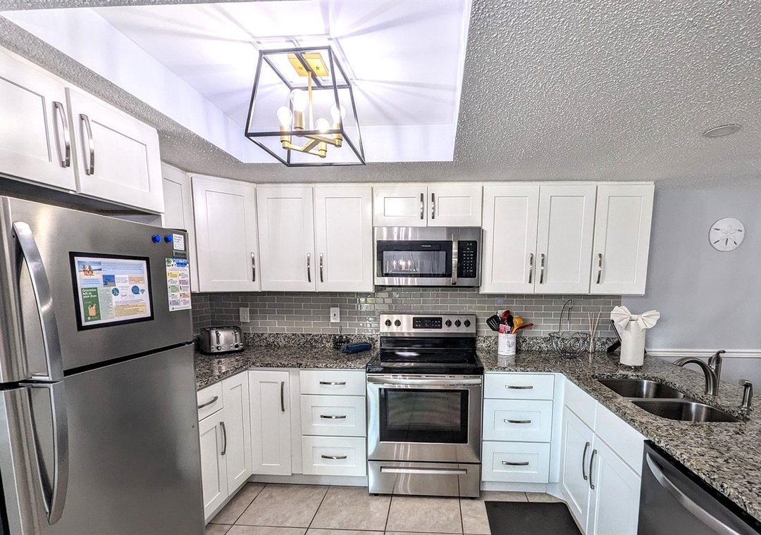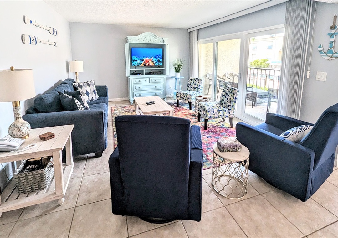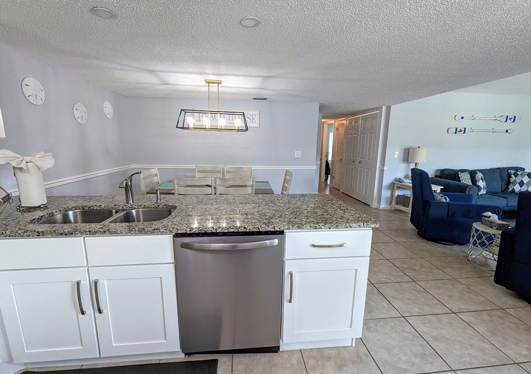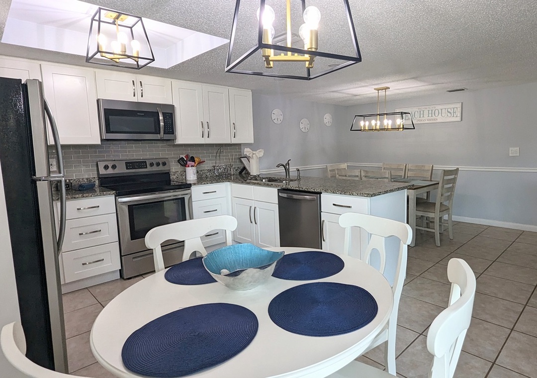 Designed for comfort and convenience, Coastal Charm has everything you need to feel right at home. The fully equipped kitchen boasts all the dishes, utensils, and small appliances you could ask for. Relax in the newly furnished living room, complete with a flat-screen TV with extended cable channels and Wi-Fi. The kitchen table overlooks the pool, providing the perfect setting for meals, while the spacious dining table is ideal for family gatherings.