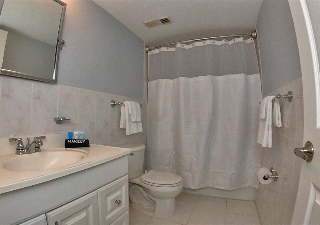 The master bedroom offers a luxurious king-sized bed, a smart TV, and a private bathroom. The guest bedroom features two twin beds and a smart TV, making it an inviting space for everyone. Additional sleeping options are available with a queen sofa sleeper in the living room, making the condo ideal for families or small groups, comfortably accommodating up to five guests.