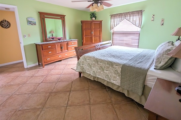 The master bedroom is a serene retreat with a king-size bed and a private bathroom, while the guest bedroom includes two twin-size beds. The guest bathroom features a convenient walk-in shower. Floriday’s comfortably accommodates up to six guests, making it the ideal spot for families or small groups to gather and enjoy everything this beautiful area has to offer.