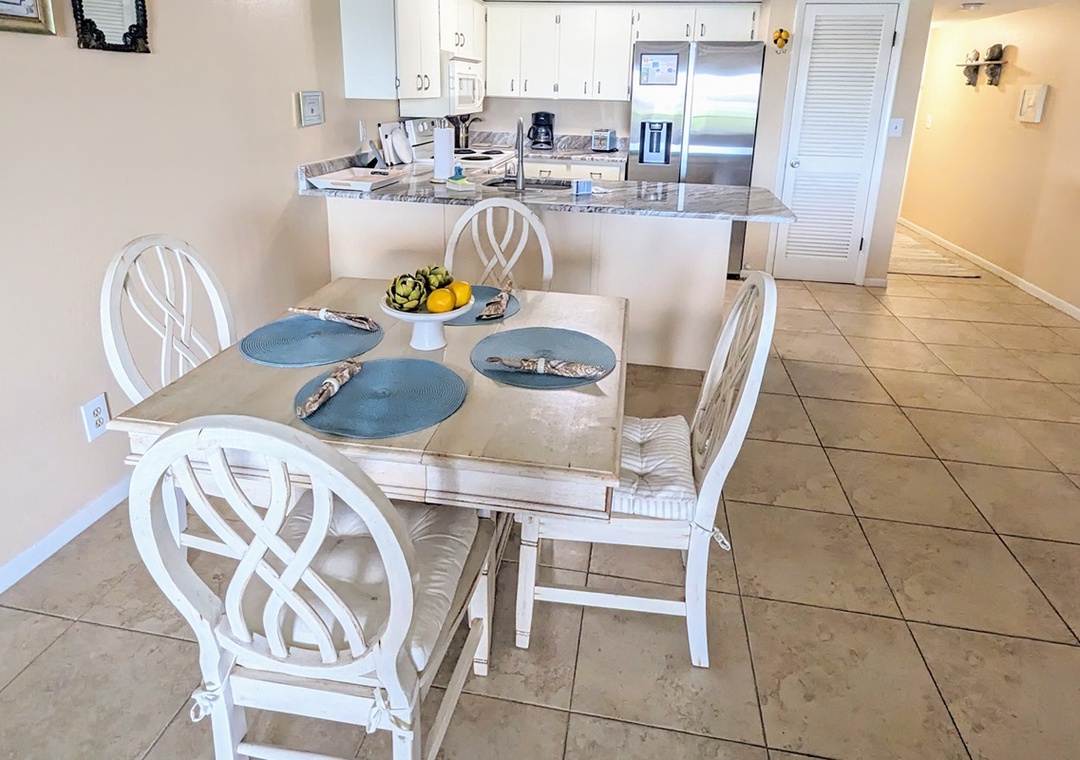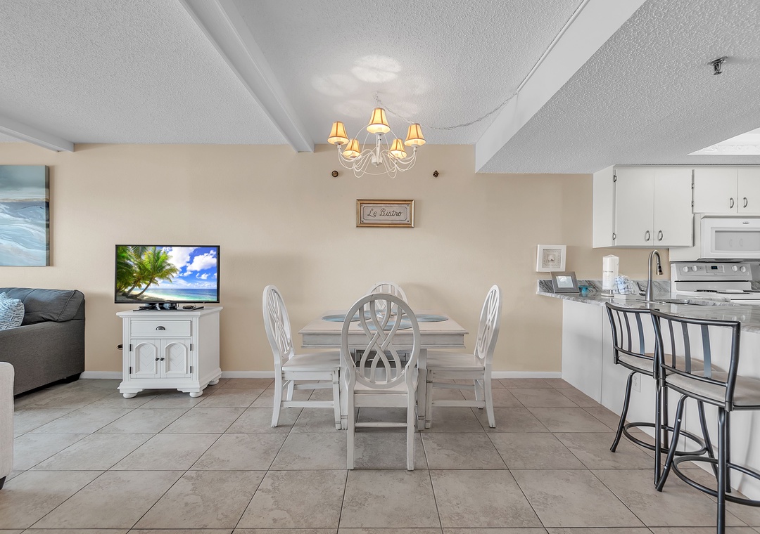 This condo has everything you need to feel right at home. The full kitchen features new countertops and is fully equipped with all the necessary dishes, utensils, appliances, and small appliances. The comfortable dining area seats up to four people, and the cozy leather living room set includes a sofa sleeper for additional guests. Enjoy your favorite shows on the flat-screen TV with extended cable channels, or stay connected with Wi-Fi throughout the condo.