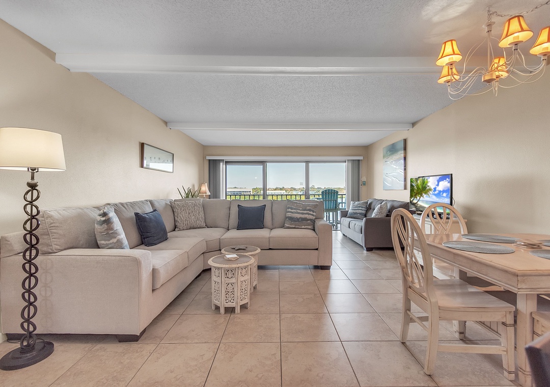 This is a beautiful condo. So clean and peaceful. The deck overlooks the water and the heated pool was great, even on cool days. The sofa has two recliners and the kitchen was stocked with essentials. Our only recommendation would be to replace the one Queen bed with a king size for added comfort. While we had a little problem the the refrigerator and it had to be replaced, the owner and property manager worked together to get us a new unit as quickly as possible and brought a small loaner in for couple days. We will definitely come again.- Reviewed On: 2/18/2022