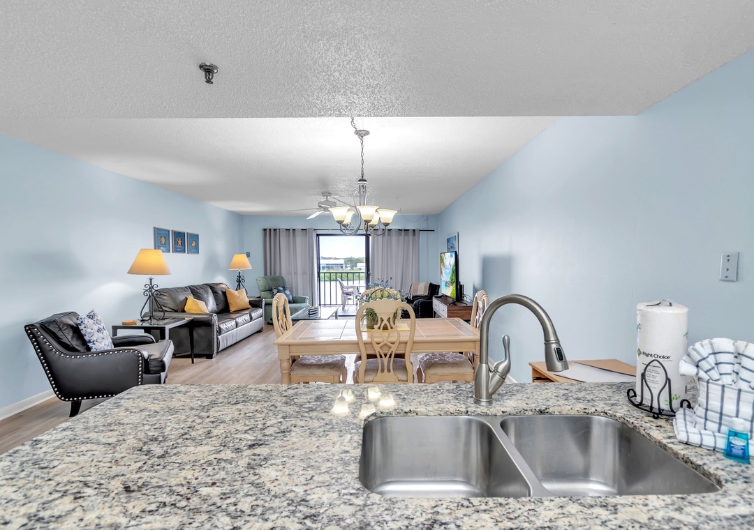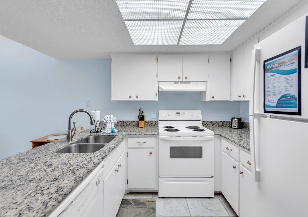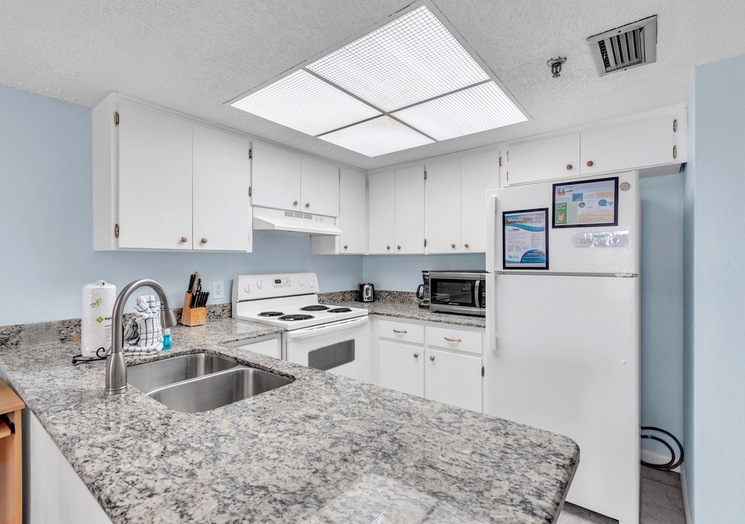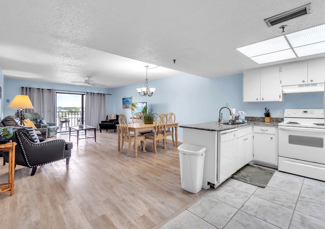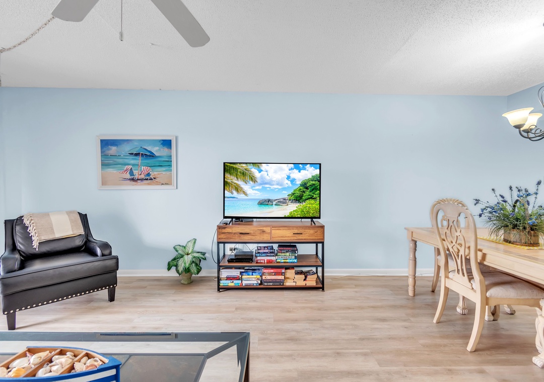 Gone Coastal is designed to provide everything you need for a relaxing stay. The fully equipped kitchen features all the necessary dishes, utensils, and small appliances, allowing you to prepare meals at your convenience. The dining area comfortably seats up to four people, and the leather living room set includes a sofa sleeper for extra guests. Enjoy a flat-screen TV with premium cable channels and stay connected with Wi-Fi throughout the condo. For those needing to work remotely, there is also a desk available.