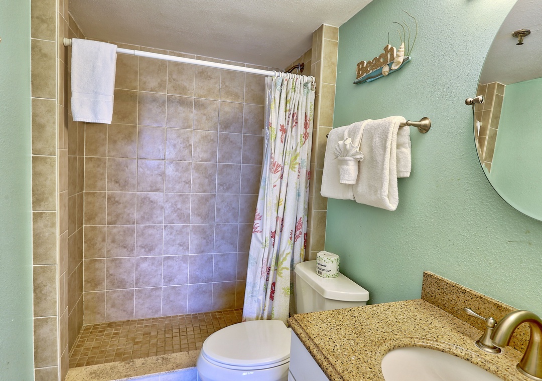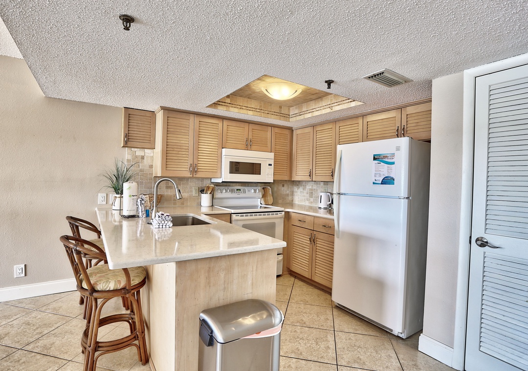 The master bedroom features a queen-size bed, while the guest bedroom includes one queen bed and one twin bed, making it perfect for families or small groups. Manatee Zone comfortably accommodates up to five guests. For your convenience, a washer and dryer are conveniently located in the guest bedroom closet.