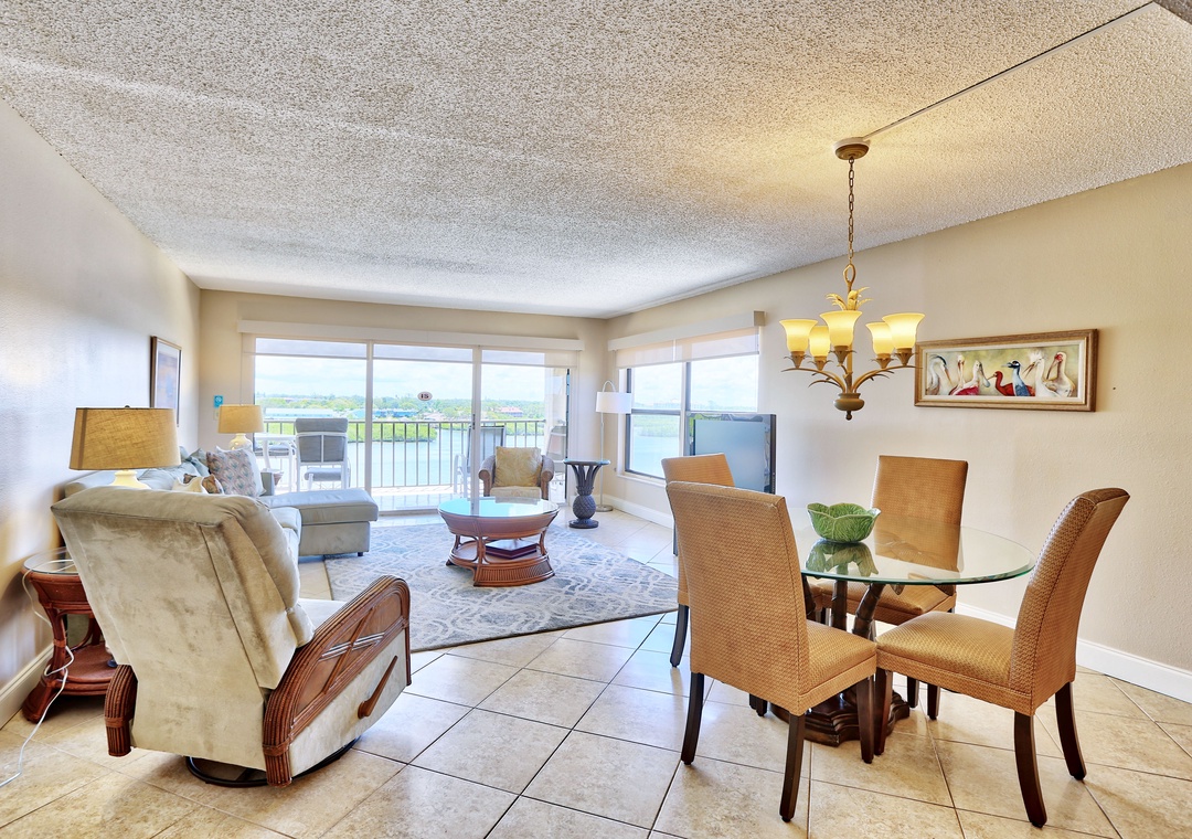 The condo is fully equipped with everything you need to feel right at home, including a full kitchen, a dining area, and a comfortable living room with a lovely view. Step outside to your private covered patio and enjoy the peaceful surroundings.