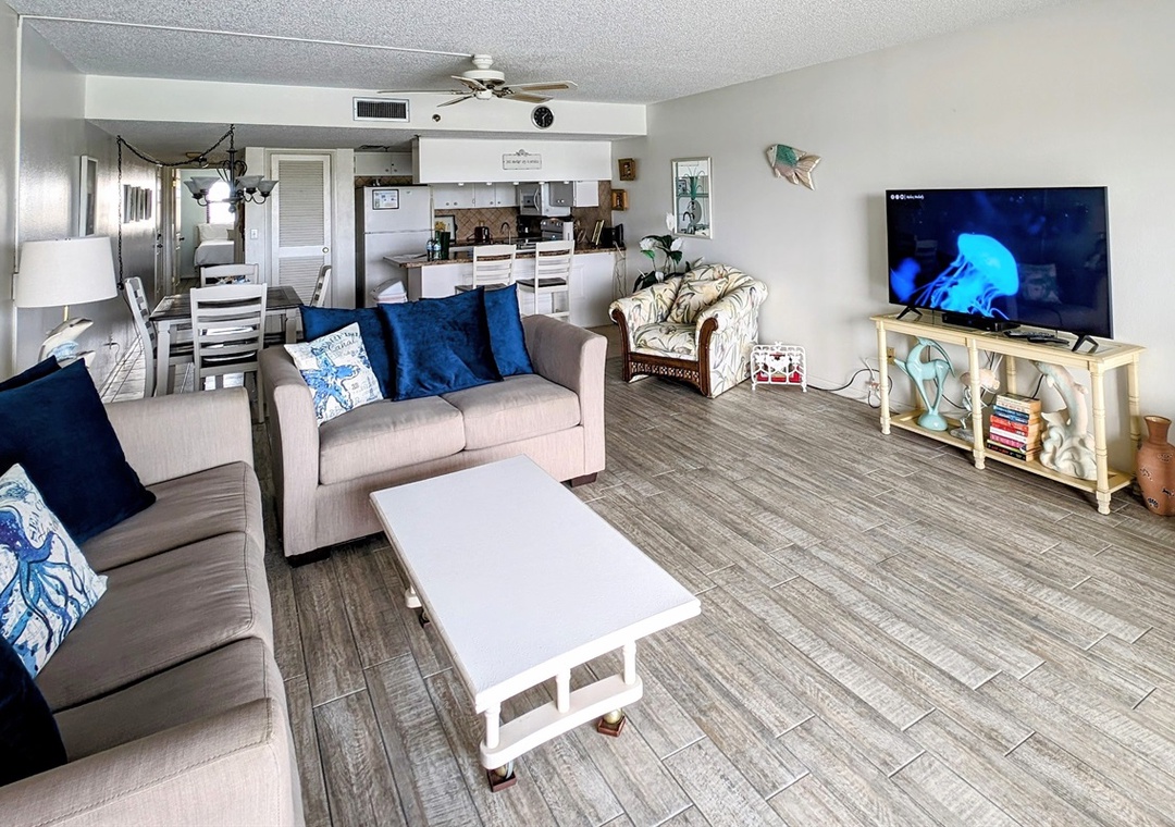 Welcome to Anchor’s Away, a beautifully appointed one-bedroom condo located on the 5th floor (accessible via elevator) of the Sea Club of Indian Shores. This cozy retreat is furnished with two queen-size memory foam beds, comfortably sleeping up to four guests. The condo features a modern bathroom with a walk-in shower, offering both style and convenience.