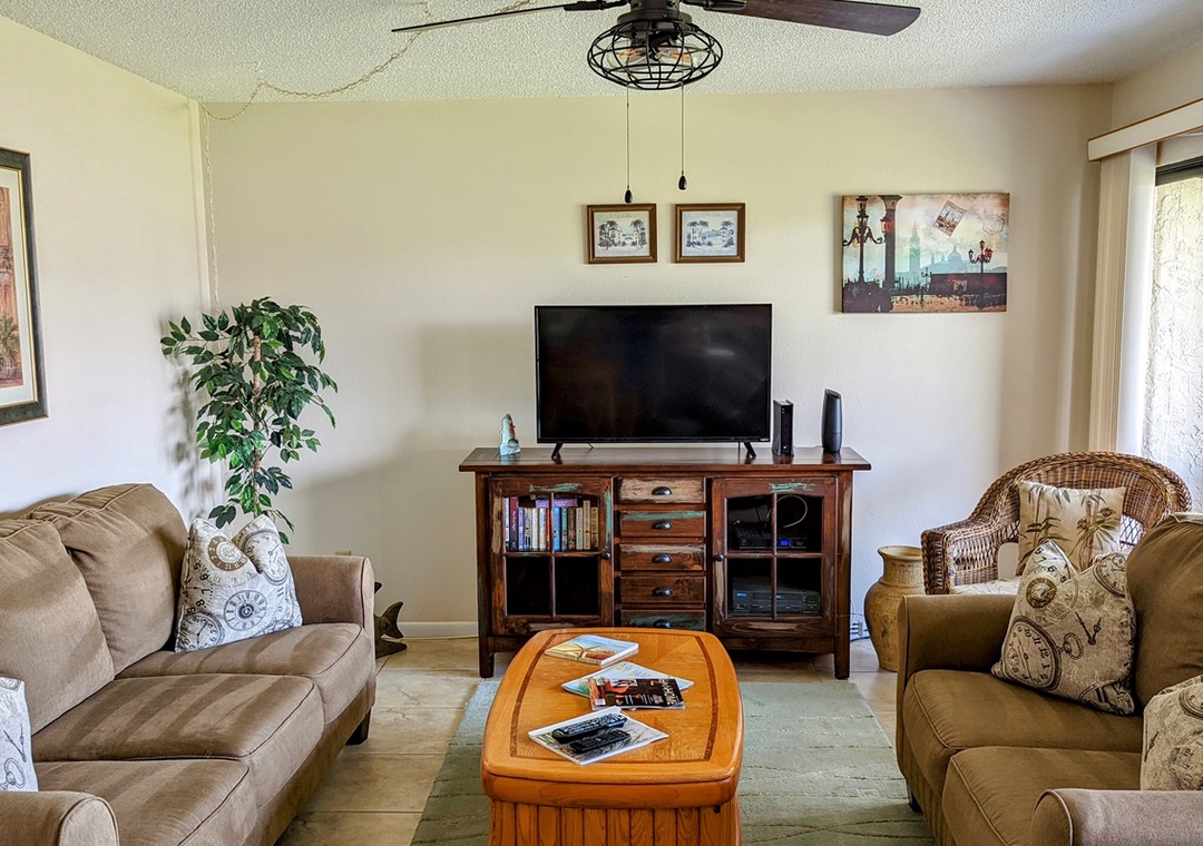 This condo has everything you will need to feel right at home with a full kitchen with all the necessary dishes, utensils, small appliances you could ask for. The dining area is comfortable with seating for up to six people, nice living room furnishings with a lazy boy chair, flat screen television with extended cable channels and Wi-Fi. The primary bedroom is large and comfortable with a king size bed and a private ensuite bathroom. The guest bedroom has two twin size beds. Footprints in the Sand accommodates four guests privately making this condo the perfect place for family to gather. There is also a washer and dryer in the unit for your convenience.