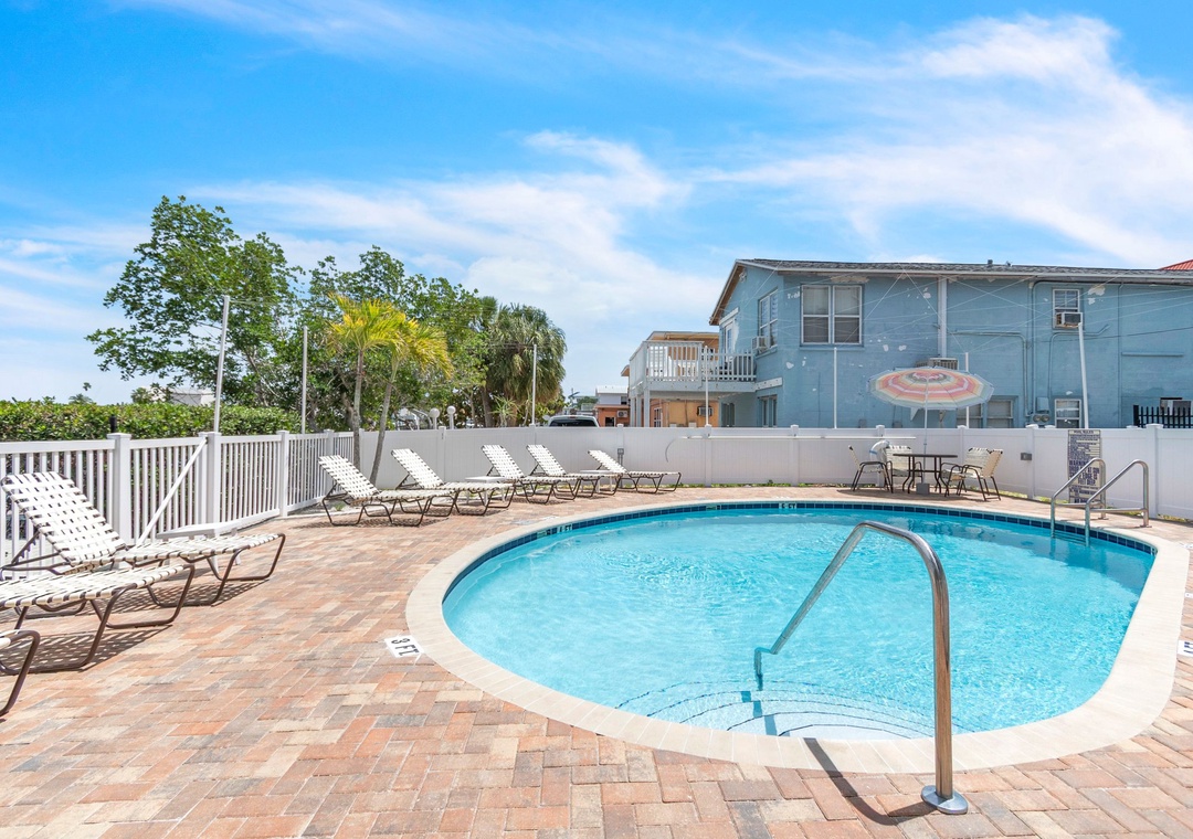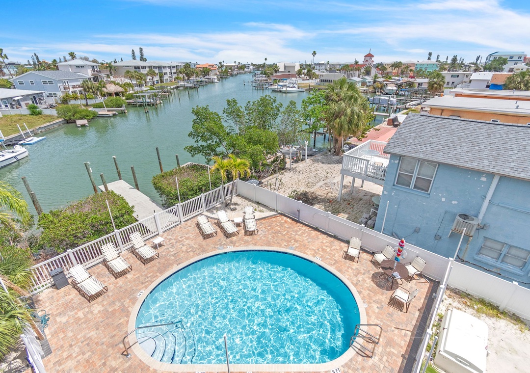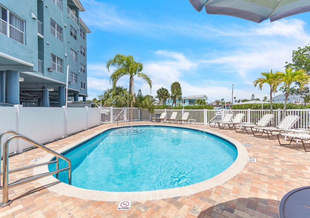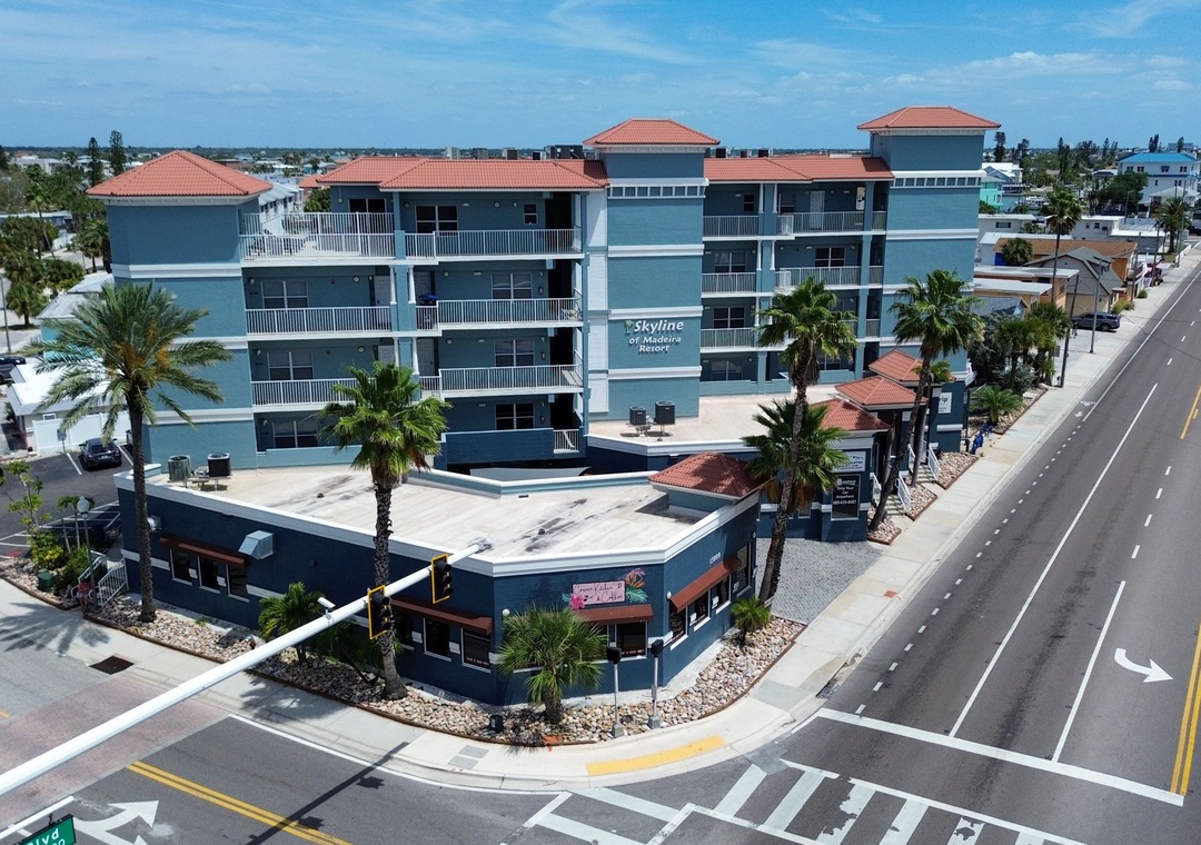 Skyline of Madeira is a fantastic waterfront location set along the Intracoastal Waterway in Madeira Beach, offering a peaceful coastal setting with beautiful water views and easy access to everything the area has to offer. The beach is just across the street—about 175 feet away—making it a quick and simple walk via a convenient crosswalk located right at the corner of Gulf Boulevard and 140th Avenue, providing safe and direct access to the sand. Onsite amenities include a shared heated pool and a spacious pool deck with lounge chairs, perfect for relaxing in the Florida sunshine. Guests can also enjoy the fishing dock on the Intracoastal Waterway, a great spot to unwind or try their luck fishing while taking in the scenic surroundings.