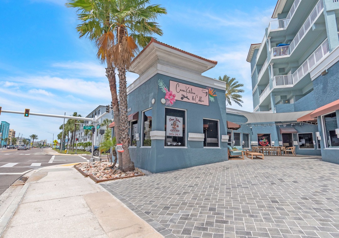 Here you are ideally located right behind Corner Kitchen and Coffee House, a local favorite serving coffee, light eats, with inviting outdoor seating and occasional live entertainment. Just a short stroll down the block is Candy Kitchen, offering homemade ice cream, fudge, Italian ice, and nostalgic old-fashioned candies. Nearby dining includes Lisa’s Cafe, known for casual breakfast and lunch comfort food, and Caddy’s Madeira Beach, a lively beachfront spot with tropical drinks, seafood, live music, and direct Gulf views. Just minutes away, John’s Pass Village and Boardwalk offers waterfront dining like fresh seafood restaurants, casual cafes, ice cream shops, boat rentals, water sports, shopping, and year-round events and entertainment for all ages.