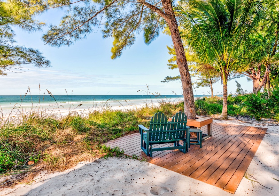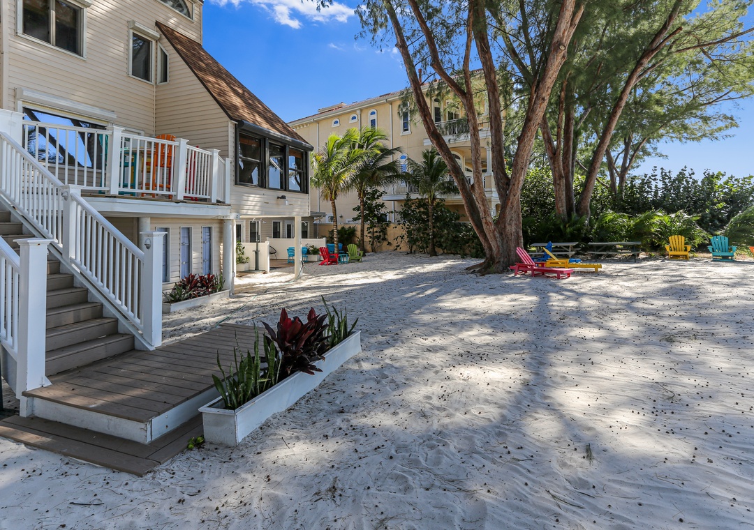 Located on the #1 rated Sunset Beach, The Sunset Beach House is a totally unique, oceanfront oasis. Resting on 100 feet of private coastline, every residence features lanais and balconies overlooking historic Sunset Beach. In October 2020, the entire property was renovated and reimagined as Treasure Island’s only truly boutique experience. New sand, landscaping additions, exterior showers for every unit, two new gas grills have been added to the already spectacular grounds. The property lends itself perfectly to gatherings, family reunions, and most notably, one of a kind beach weddings and receptions. The yard comfortably accommodates up to 100 guests.