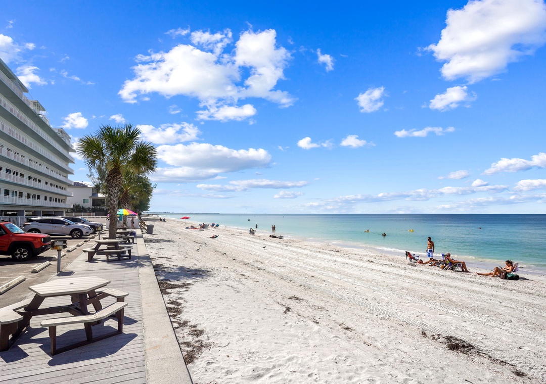 Located directly on the sands of Sunset Beach in Treasure Island, Sunset Chateau offers beachfront condo living at its best. Step out your front door onto the beautiful Gulf beach, with stunning sunsets and soft white sand just steps away. Enjoy the laid-back vibe with local favorites like Caddy’s on the Beach and Ka Tiki within walking distance—offering live music, great food, and cold drinks right by the water. Just a short drive or stroll down Gulf Blvd brings you to even more local gems like Sea Dog Brewing, Taco Bus, Shrimpy’s, Sloppy Joe’s, and Publix. The perfect spot for beach lovers looking to relax and explore!