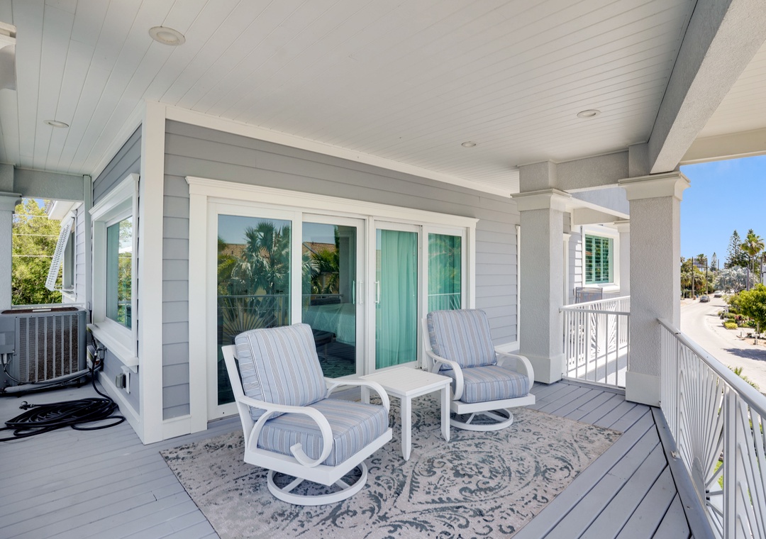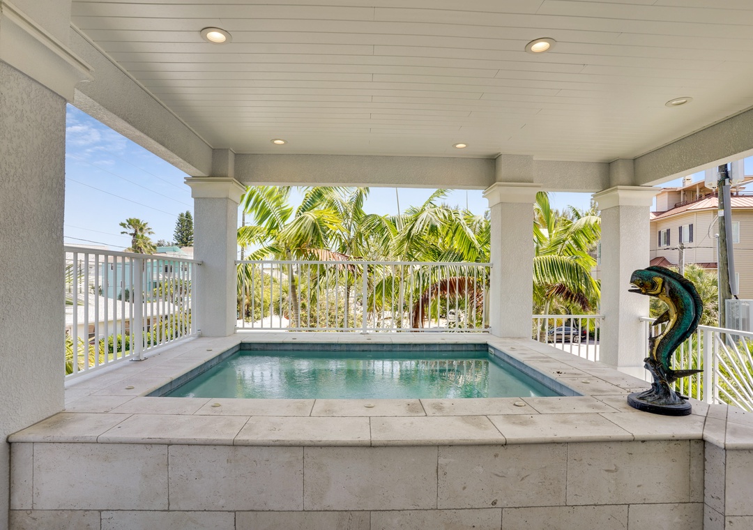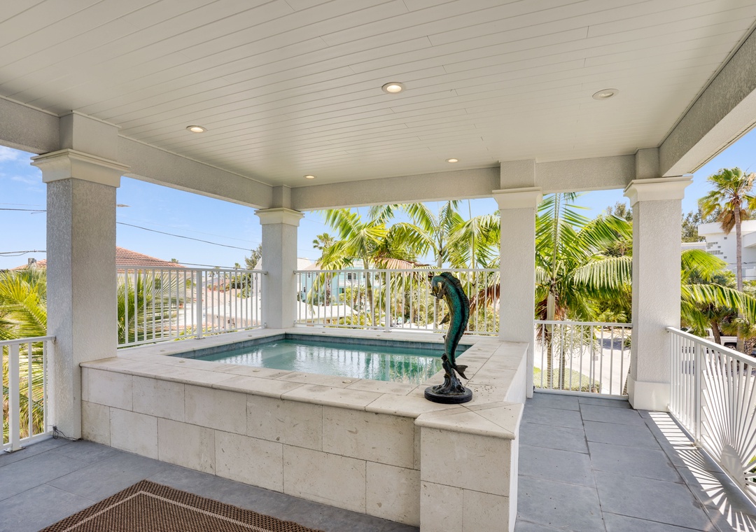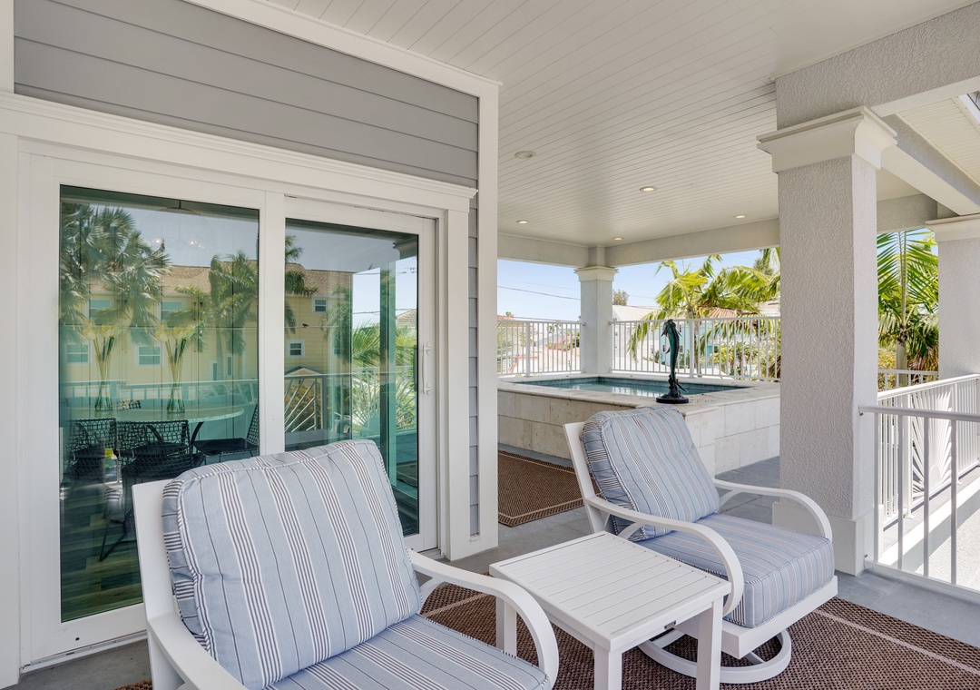 • Large private balcony hot tub with an attached comfy outdoor seating area