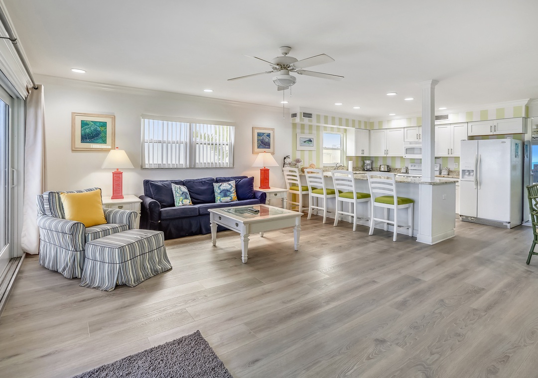 If I have any complaints it would be that 1) You have to pick up your keys about 20 minutes away in St Pete Beach. Not a huge deal and the people are very friendly but still an inconvenience if you're coming from the north. 2) We were in one of the downstairs units and you can definitely hear the people above you moving around and walking. It wasn't an issue of them being rowdy or jumping around (they were very nice and quiet) it was simply the sounds echoing from the floor above us. We would definitely book an upstairs unit next time!- Reviewed On: 5/13/2017