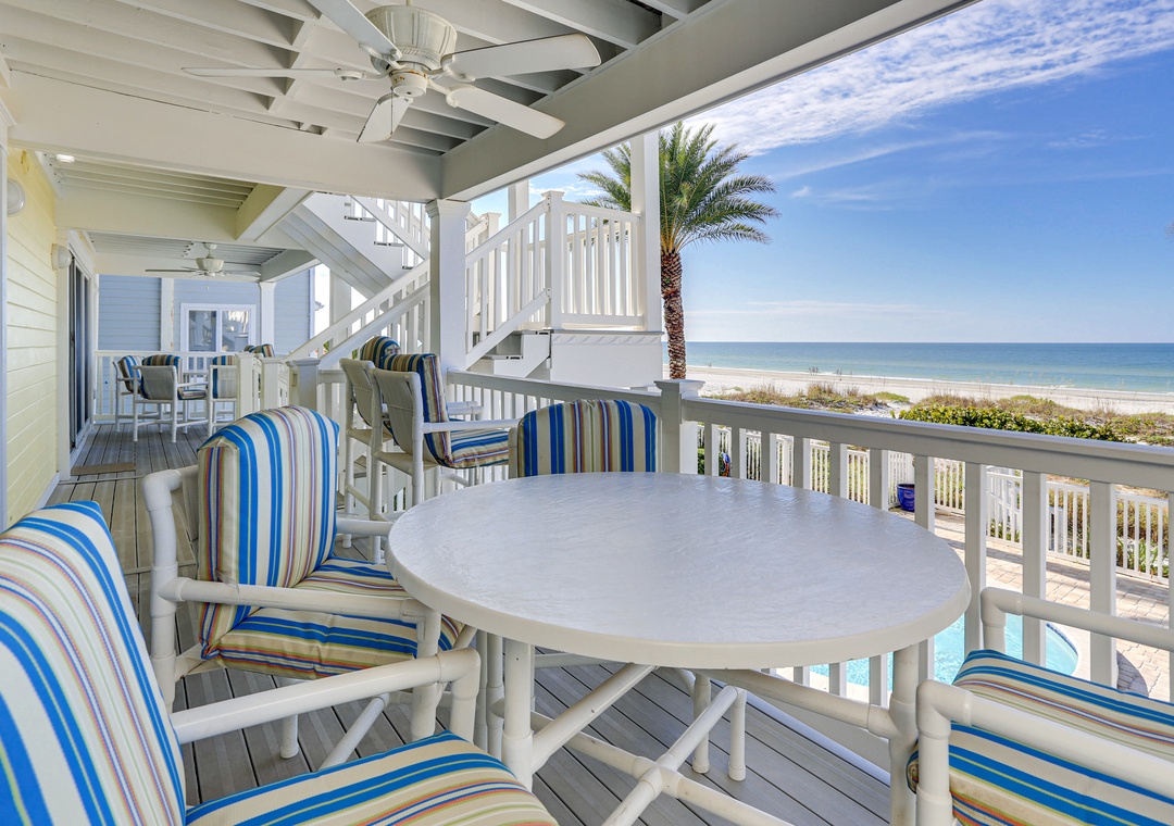 Experience true Florida living in this charming beachfront property!! This amazing 2 bedroom, 2 bath condo has an open and spacious living and dining room area, a fully stocked and beautifully updated kitchen with granite counter tops, lovely décor with tasteful colors, tile and wood flooring throughout as well as a lovely balcony right off of the living room. Each condo has 2 balconies for use, 1 off the Master bedroom and the other overlooking the Gulf of Mexico! This location is perfect for a family getaway as there is a park in the front of the property and a pool and the beach in back! Unit #2 is 1 flight of stairs up and on the north corner. Come and play on our beaches today!! PLEASE NOTE: This is a totally non smoking property. There is no elevator at this location, only stairs for access. This property does allow for shorter stays at certain times of the year. Please contact us for more details.