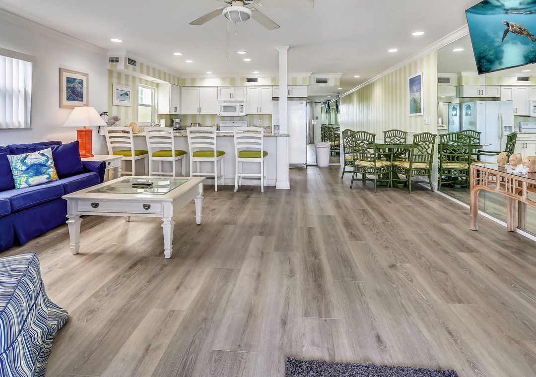 Thank you for your review! Great to hear you had an enjoyable stay. I wanted to let you know that as we speak the kitchens are being remodeled! There will be new pictures coming soon! We look forward to hosting a third stay for you soon. Thanks again!Resort Rentals staff
