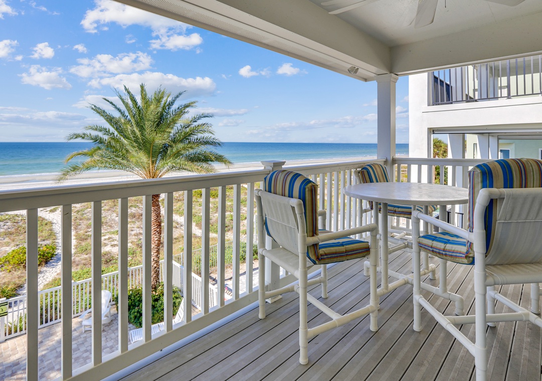 Experience true Florida living in this charming beachfront property!! This amazing 2 bedroom, 2 bath condo has an open and spacious living and dining room area, a fully stocked and beautifully updated kitchen with granite counter tops, lovely décor with tasteful colors, tile and wood flooring throughout as well as a lovely balcony right off of the living room. Each condo has 2 balconies for use, 1 off the Master bedroom and the other overlooking the Gulf of Mexico! This location is perfect for a family getaway as there is a park in the front of the property and a pool and the beach in back! Unit #4 is 2 flights of stairs up and on the north corner. Come and play on our beaches today!! PLEASE NOTE: This is a totally non smoking property. There is no elevator at this location, only stairs for access. This property does allow for shorter stays at certain times of the year. Please contact us for more details.
