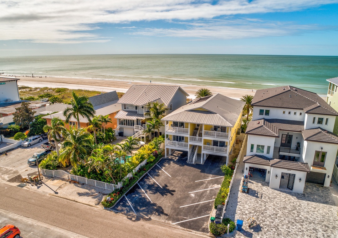 Sunset Villas is a unique and adorable beachfront property in Redington Shores. This location has 4 different 2-bedroom, 2 bath units with each having a semi private beachfront balcony from the living room area as well as a private balcony off the front of the condo. Each condo has a comfortable beach décor throughout, individual washer and dryer for use, onsite parking and each sleeping up to 5 guests. Onsite is a heated - private pool, direct beach access, playground area across the street for the kids, charcoal grill and patio area for those evening cookouts along with everything else that you need for a truly memorable beach vacation