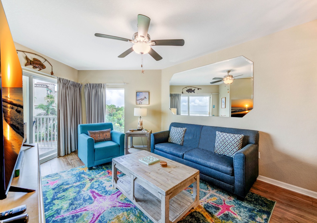 • Living room and main bedroom accessible to the private beach balcony.