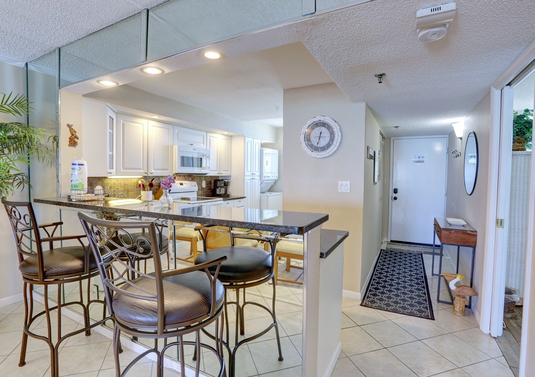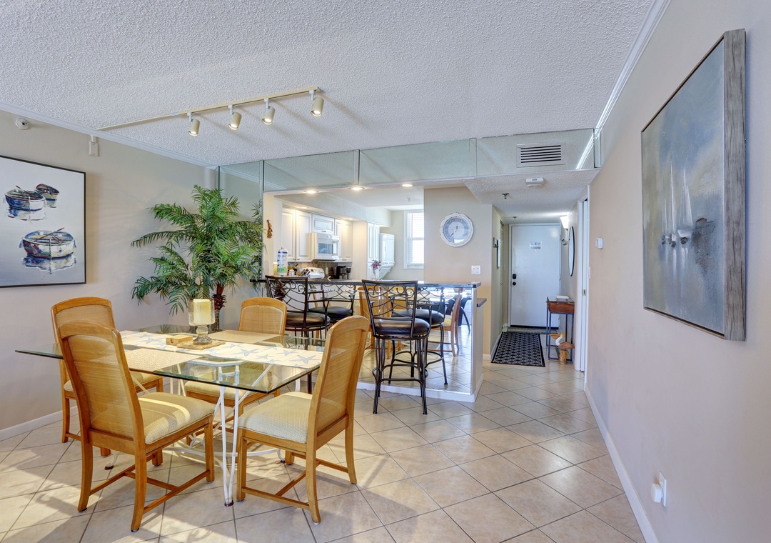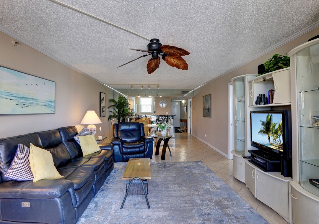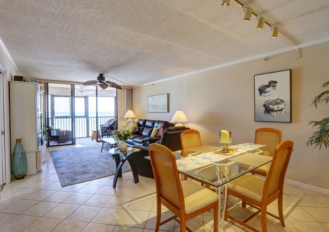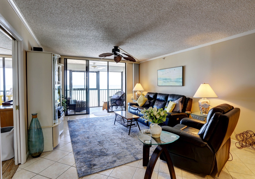 Upon entering, you'll be greeted by the sunlit interiors adorned with cheerful coastal decor, instantly setting the mood for relaxation. The open layout ensures connectivity among guests, allowing for memorable moments together. Sink into the comfortable leather furniture in the living room and catch up on your favorite shows on the flat-screen TV, or simply bask in the stunning views of the Gulf from the screened-in balcony. Start your day with a cup of coffee as you watch the sunrise, and wind down with a refreshing drink while witnessing the breathtaking sunsets.