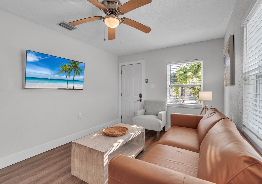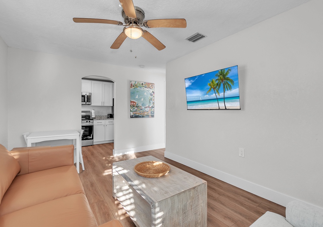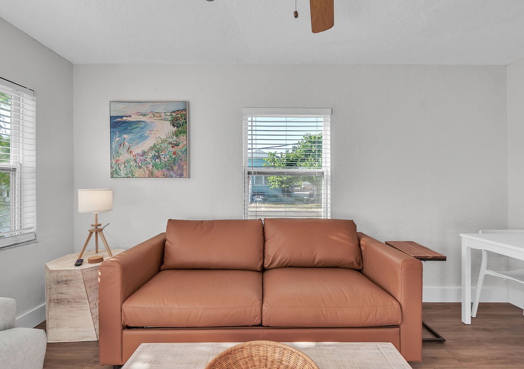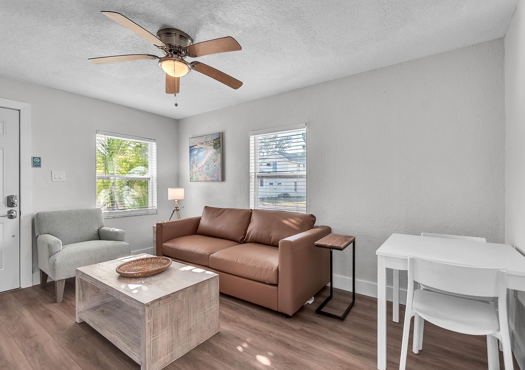 Welcome to The Bungalows #1, your perfect retreat on beautiful Treasure Island. This charming one-bedroom, one-bathroom unit is designed for comfort and relaxation, accommodating up to four guests with ease. The cozy queen bed in the bedroom and a full-sized pullout sofa in the living room ensure a restful night's sleep. You will find a large SmartTV in the living room as well as in the bedroom. The bathroom is equipped with a large walk in shower, and the open-concept living area is perfect for unwinding after a day of adventure.