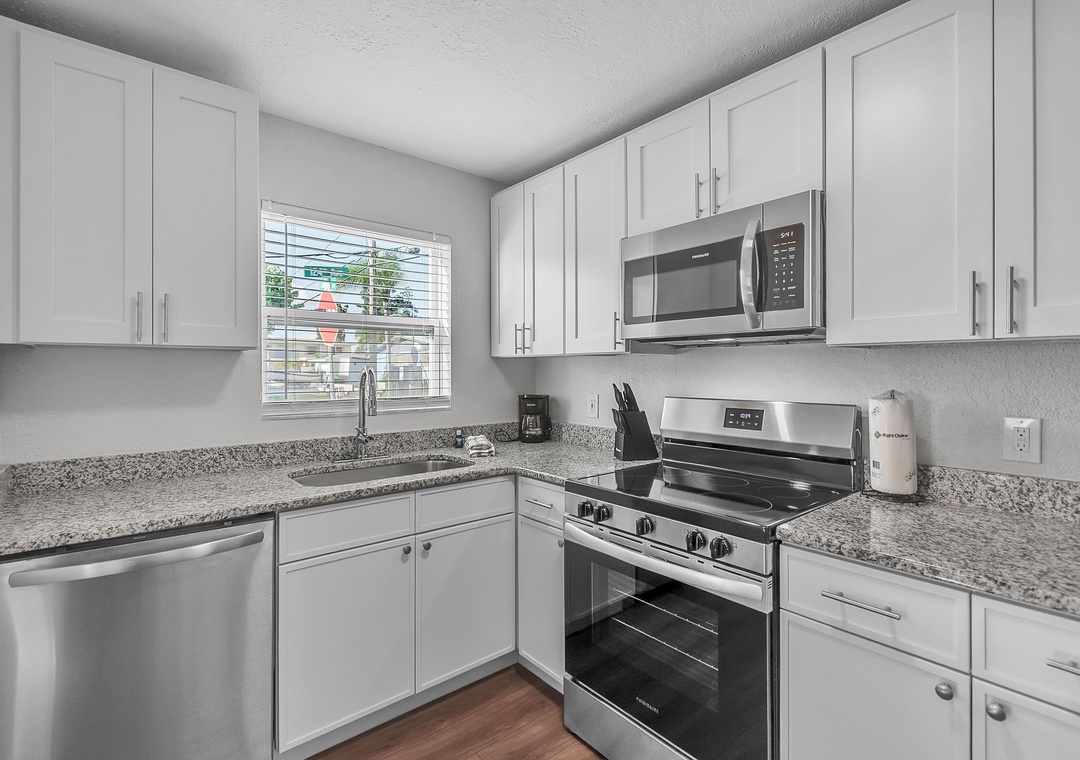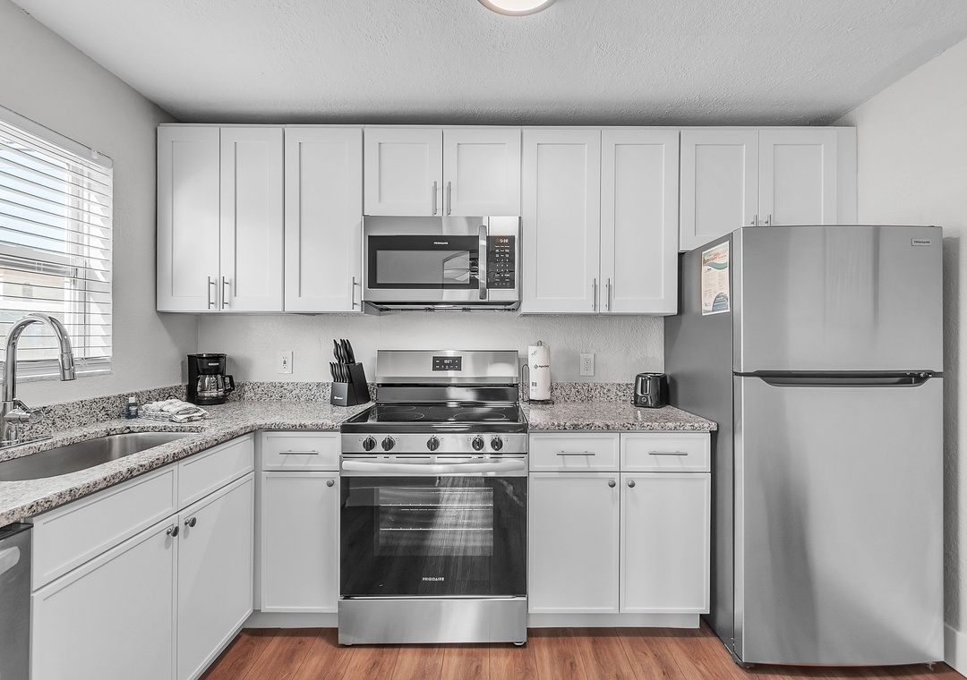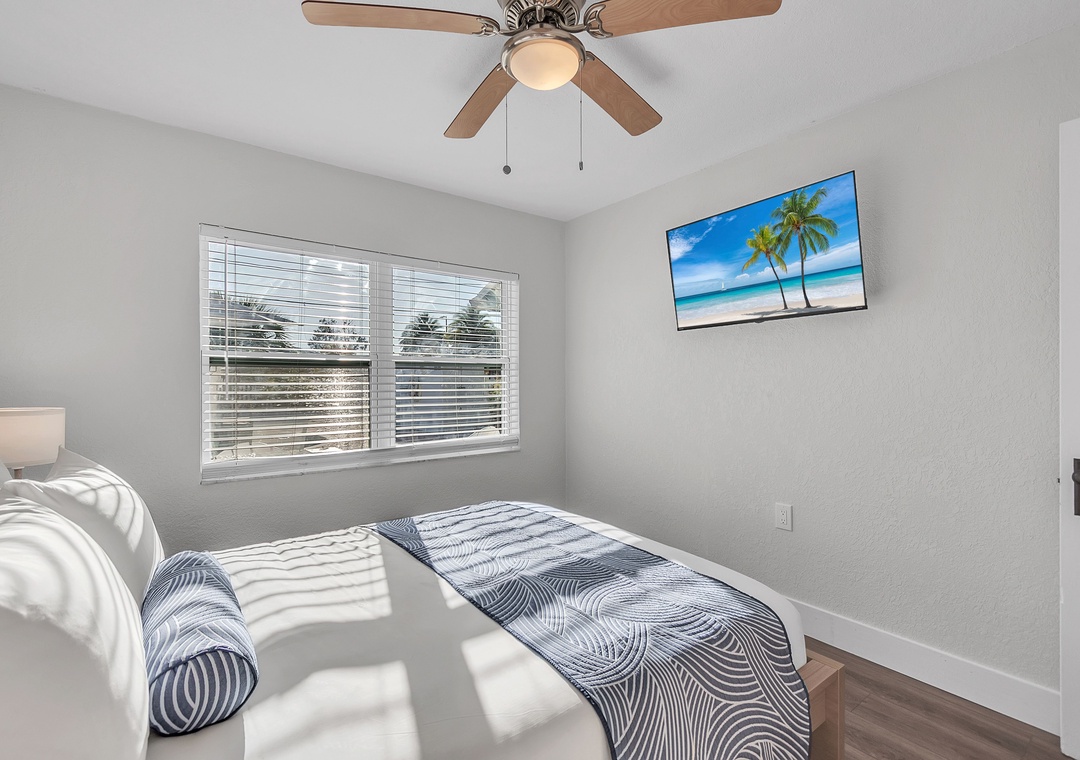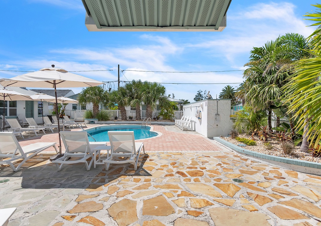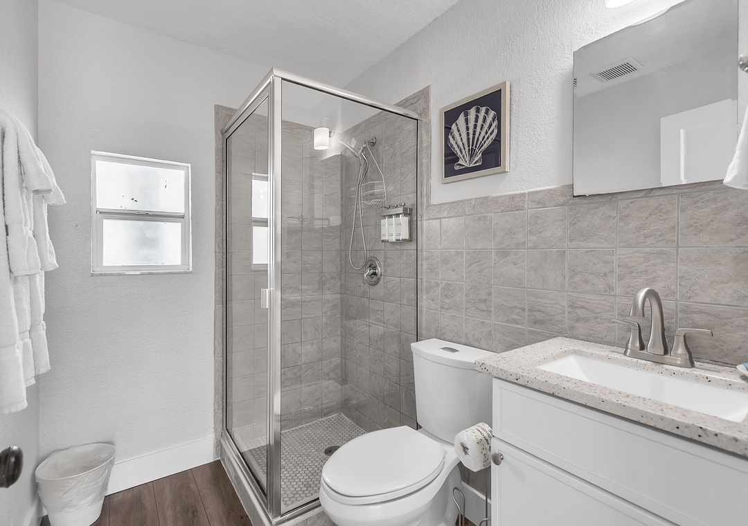 Welcome to The Bungalows #1, your perfect retreat on beautiful Treasure Island. This charming one-bedroom, one-bathroom unit is designed for comfort and relaxation, accommodating up to four guests with ease. The cozy queen bed in the bedroom and a full-sized pullout sofa in the living room ensure a restful night's sleep. You will find a large SmartTV in the living room as well as in the bedroom. The bathroom is equipped with a large walk in shower, and the open-concept living area is perfect for unwinding after a day of adventure.