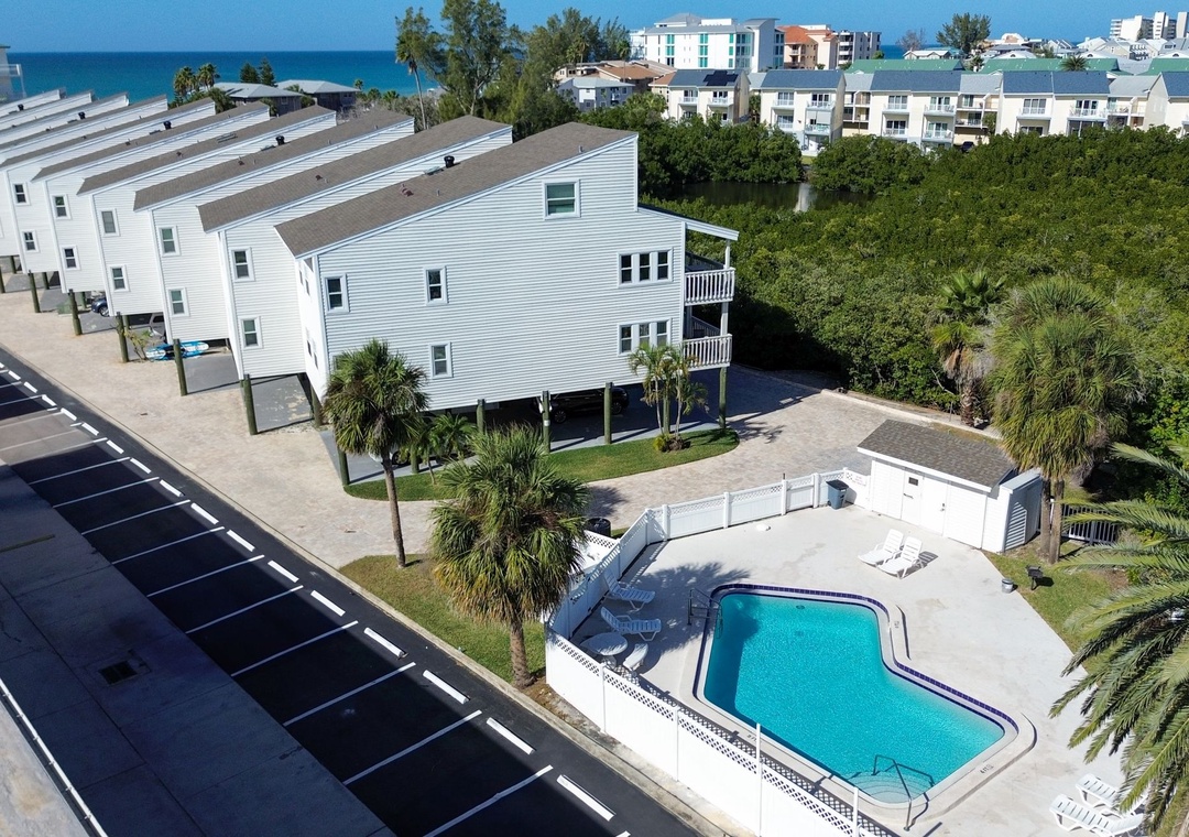 The Intercoastal is a welcoming condo complex in Indian Shores, situated along the tranquil Intracoastal Waterway and just a short, easy walk to the beach. A convenient crosswalk to the north and beach access at the end of 198th Ave make getting to the shoreline simple and safe. The community features a heated pool with a spacious pool deck and plenty of lounge chairs, offering a relaxing spot to unwind after a day in the sun.