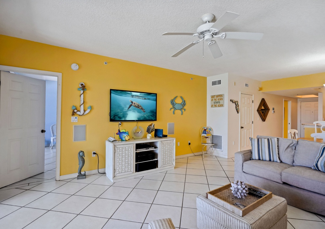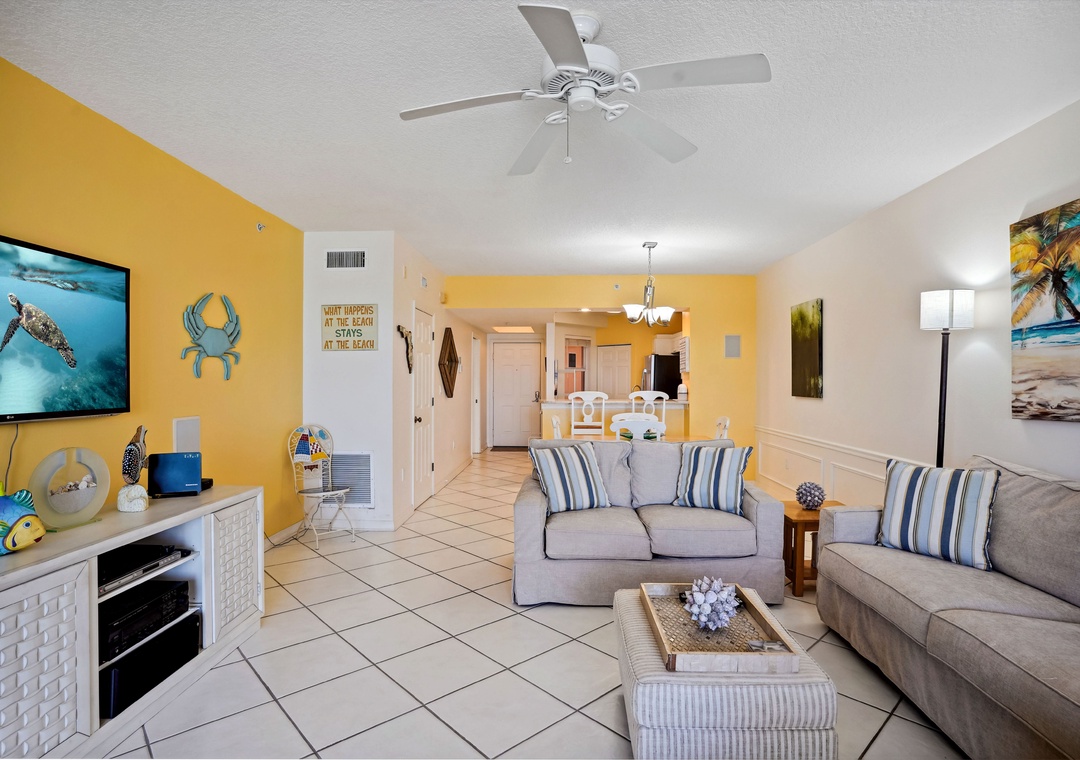 Tides 6-563 is filled with coastal colors and seaside charm. This 2 bedroom, 2 bath getaway is going to give you the vacation memories you deserve! The large beachfront balcony is easily accessible from the living room and primary bedroom. You’ll never be more than a few steps from stunning beach views. You’ll enjoy the comforts of home during your vacation, including a fully equipped kitchen stocked with cookware and dishware. The living room and each of the bedrooms feature flat screen TVs so whether you are looking to enjoy a movie night together, or relax with your favorite shows for the evening, you’ll be set!