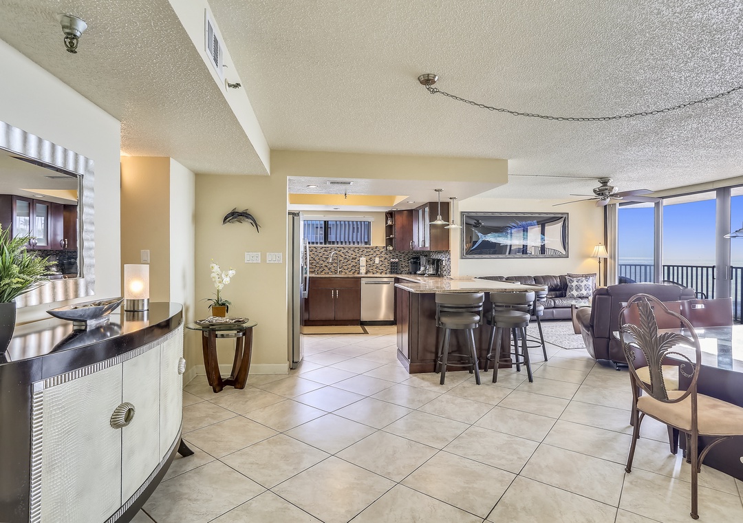 • As you enter, you'll be greeted by floor to ceiling sliding glass doors and a panoramic view of the Gulf of Mexico.