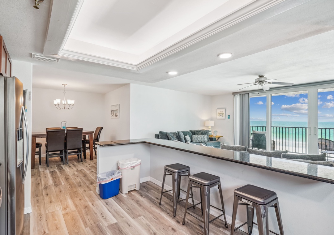 • As you enter, you'll be greeted by floor to ceiling sliding glass doors and a panoramic view of the Gulf of Mexico.
