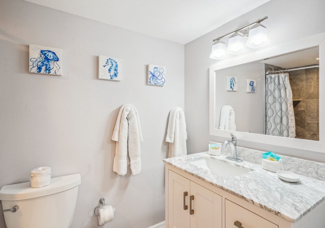 Thank you for reviewing your stay at Trillium 1C. We hope you enjoyed your stay. So pleased you liked the location and the beach. We do provide a starter kit at arrival to include those items. We look forward to your future stay.Resort Rentals staff