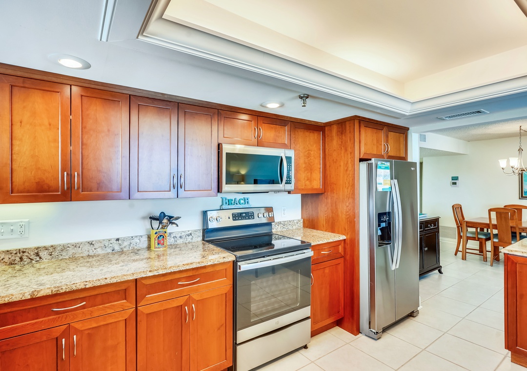 We are so glad you enjoyed your stay in this lovely, updated beachfront condo on Madeira Beach! If there is ever anything missing from the kitchen items that would be useful to you during your stay, please do not hesitate to contact us at our office as we do keep a number of frequently asked for items here that we are happy to get your way. Thank you for choosing to stay with us and we hope to see you back for another visit soon.Resort Rentals staff