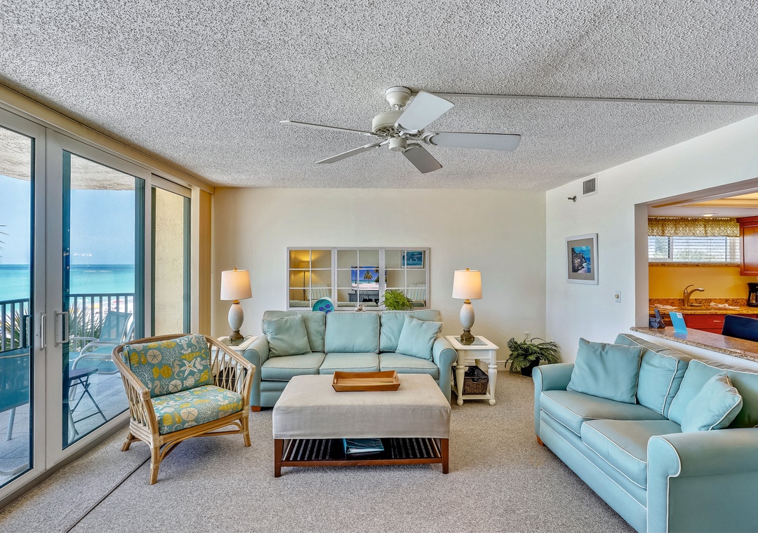 • As you enter, you'll be greeted by floor to ceiling sliding glass doors and a panoramic view of the Gulf of Mexico.