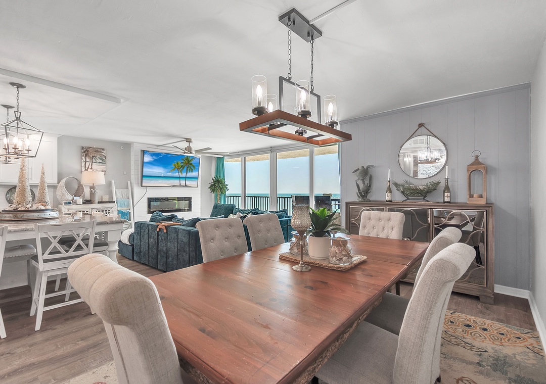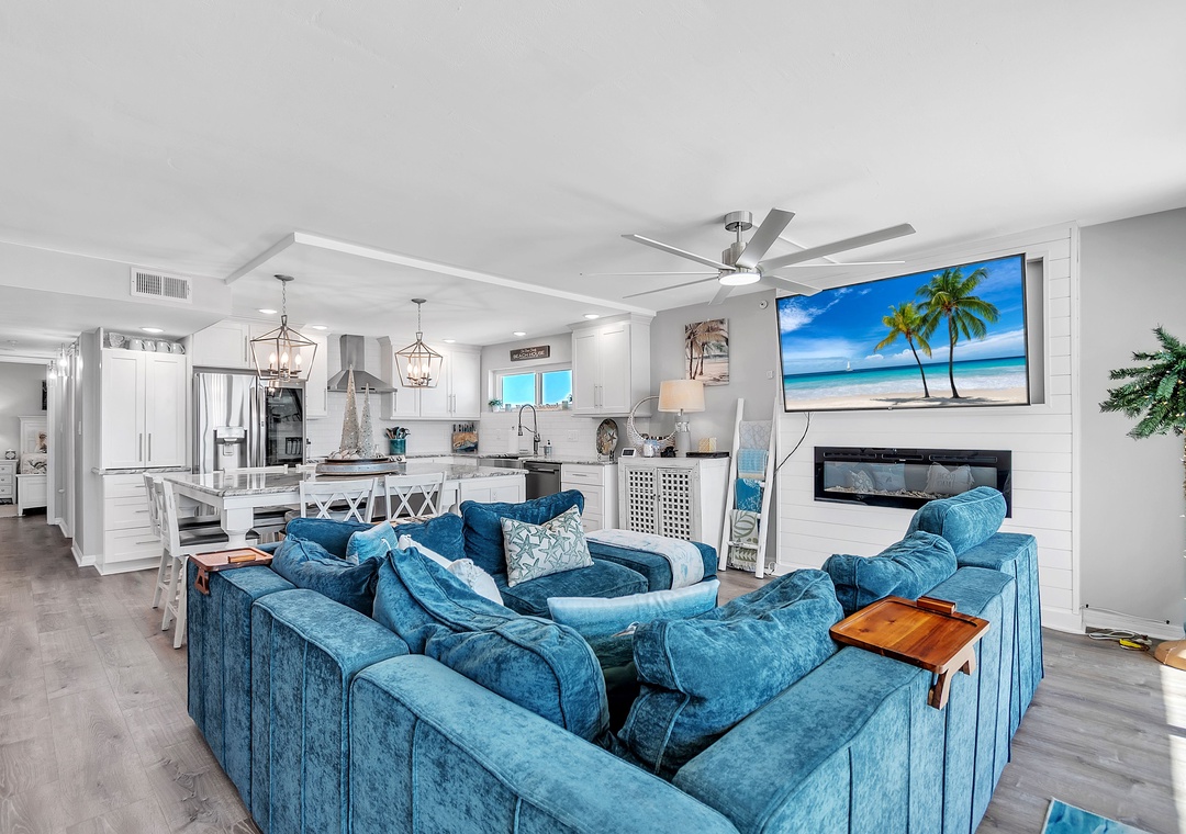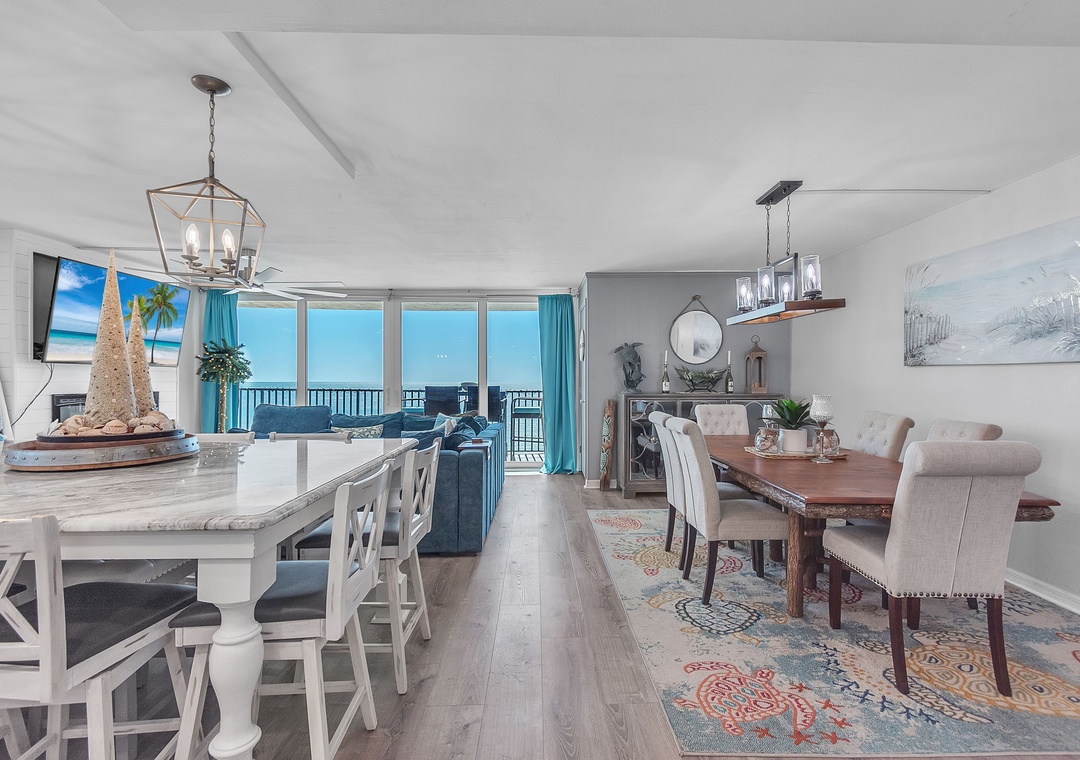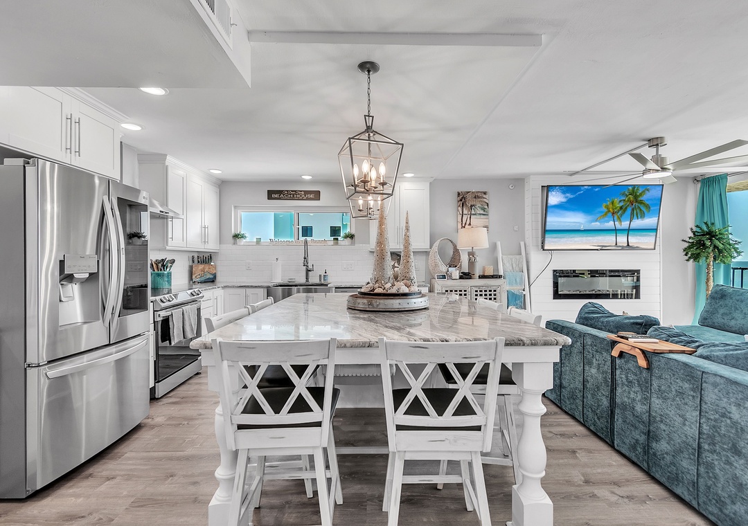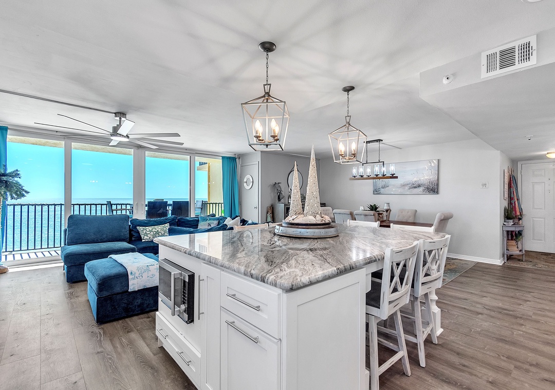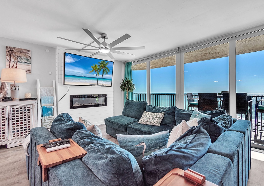 This bright and spacious retreat features an open-concept living area with an oversized, ultra-comfy sectional — perfect for relaxing with the whole family after a sun-soaked beach day. Enjoy movie nights on the large Smart TV or step out onto the private beachfront balcony for an unforgettable sunset view.