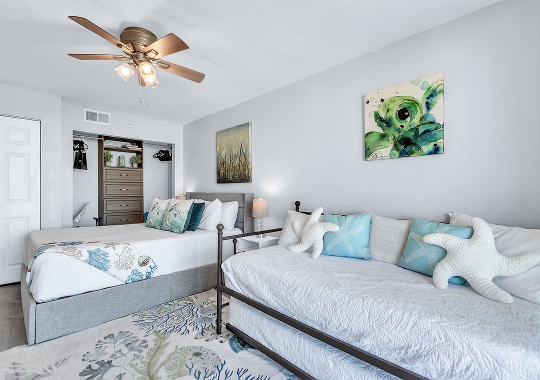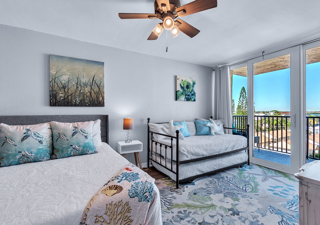 Guest Bedroom - Queen Bed. Twin Day Bed with Twin Trundle Pullout. Balcony Access.