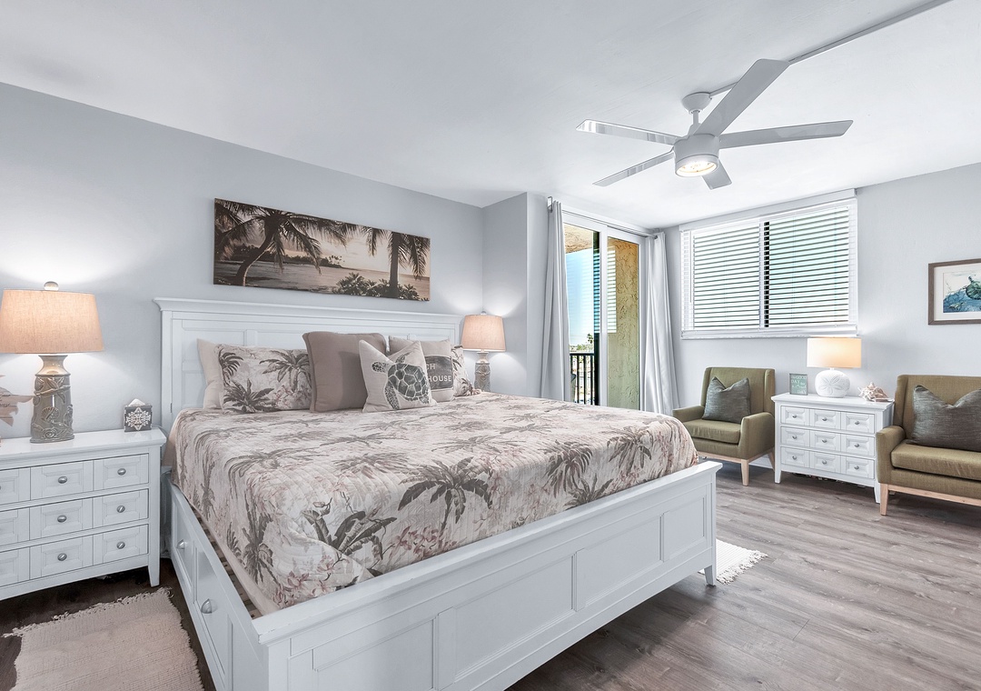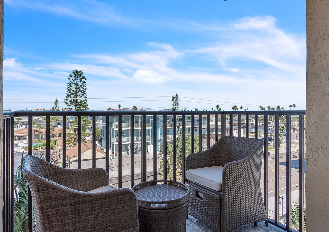 Your private beachfront balcony is truly a showstopper — equipped with high-top seating and unbeatable views of the Gulf, it’s the perfect place to dine al fresco or catch breathtaking sunsets each evening.
