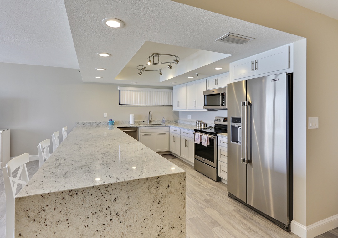 We are so glad to hear you enjoyed this updated, beachfront condo on Madeira Beach! Thank you for being our guest and we hope to have you back for another visit soon.Resort Rentals staff