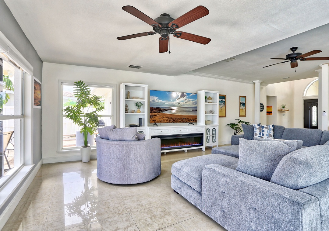 Step outside to enjoy the awesome outdoor area, complete with a sparkling heated pool, comfortable lounge chairs, a dining table for al fresco meals, and a cozy fire pit for evening relaxation. The fishing dock on the Intracoastal Waterway is a fantastic spot to catch a glimpse of dolphins and manatees passing by, while stunning beach access is just a quick walk away, offering easy access to sun, sand, and surf.
