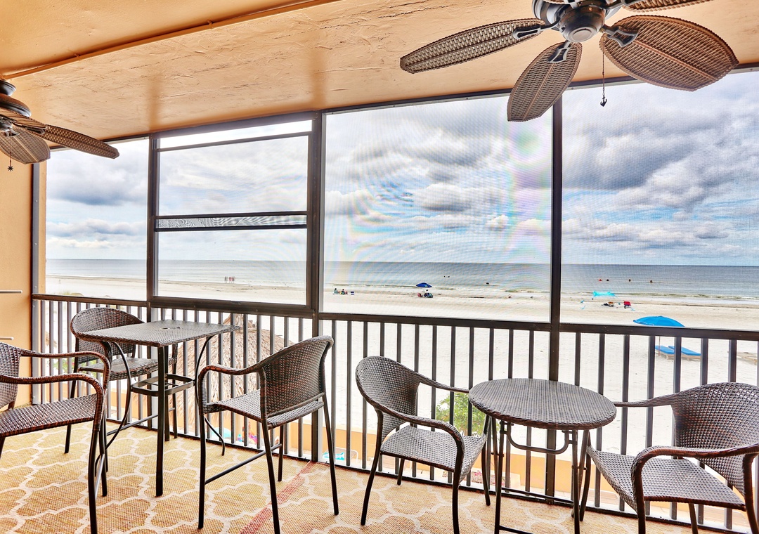 • Spacious screened balcony featuring breathtaking views of the Gulf of Mexico.