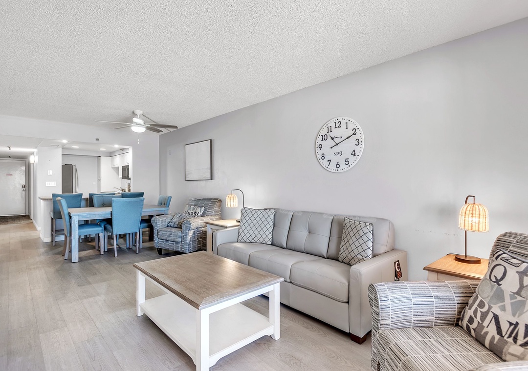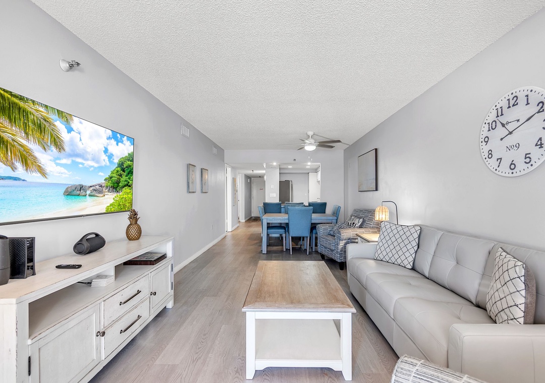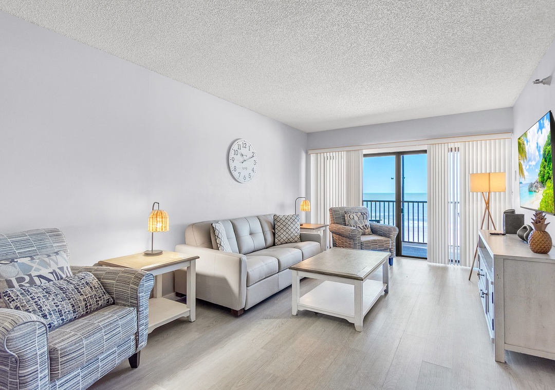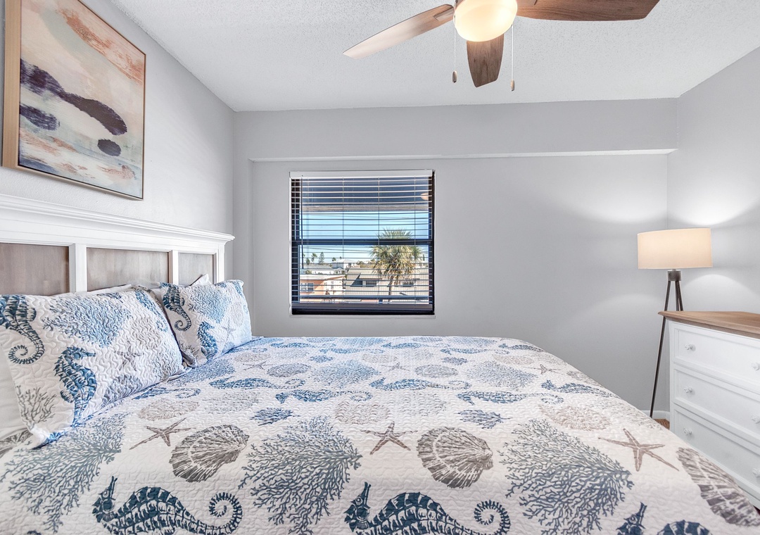 Unit was very clean. Appreciated the suitcase valet/table for my suitcase in the main bedroom, it made packing/unpacking so much easier. Wonderful view from main bedroom and living room. Unit is very large, comfortable sofas, good beds, washer dryer (bring your own detergent), kitchen table, tvs, wifi, great closet space, 2 nice sized bathrooms, great seating on screened in balcony, that had superb direct view of ocean, full kitchen with pantry. Offered coffee maker but no coffee. Quality white sheets and an extra set. Nice bath towels but no beach towels. No beach chairs, but there were rental chairs on beach and then non-rental lounge chairs, palapa and bench seating on beautiful brick paver area right before you get to the beach. Property very well kept. Stairways, elevator, garage, walkways all clean. Really appreciated the option of stairways (there were 3 of them) or an elevator. They were kept locked which made me feel safe. Pool with gate locked too, clean pool bathroom also locked. Entry off of beach to garage and property had locked gates too. Loved the two locations to enter from beach offered brick pavers to foot and regular showers. Also loved the paver area mentioned above, where it had palapas for shade over tables and sun lounger chairs. Loved the location in proximity to Sweet Brewnette and Caddy's. Appreciated the quick responses when I was preparing to arrive. Some of the other renters did not pay attention to non-smoking rules or respect the request to keep sand toys and chairs off of hallways and in the garage, but that was not the resorts fault. It's just "people". There was construction going on 2 doors down from my unit 305, but they were respectful of time of day and kept vacuuming their mess from the walkways. The garage parking was nice but has a very low clearance. Didn't look like it could accommodate tall trucks. Really enjoyed this property and would like to come back again.- Reviewed On: 10/8/2021