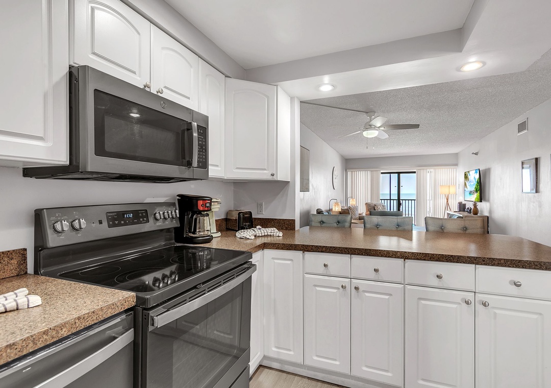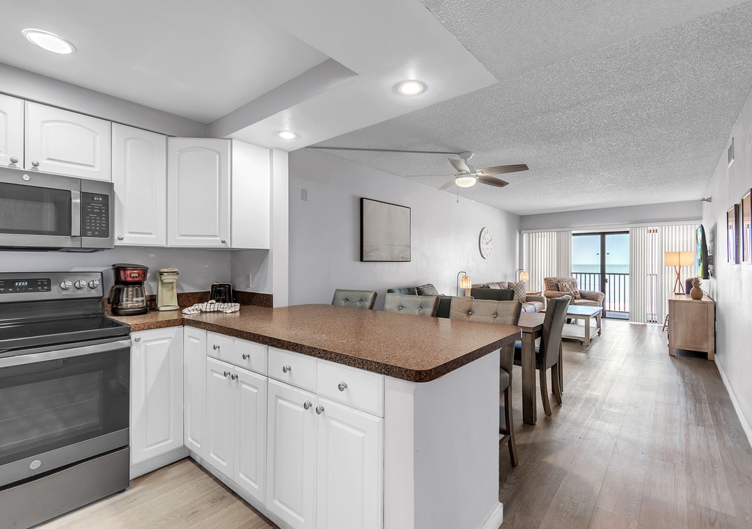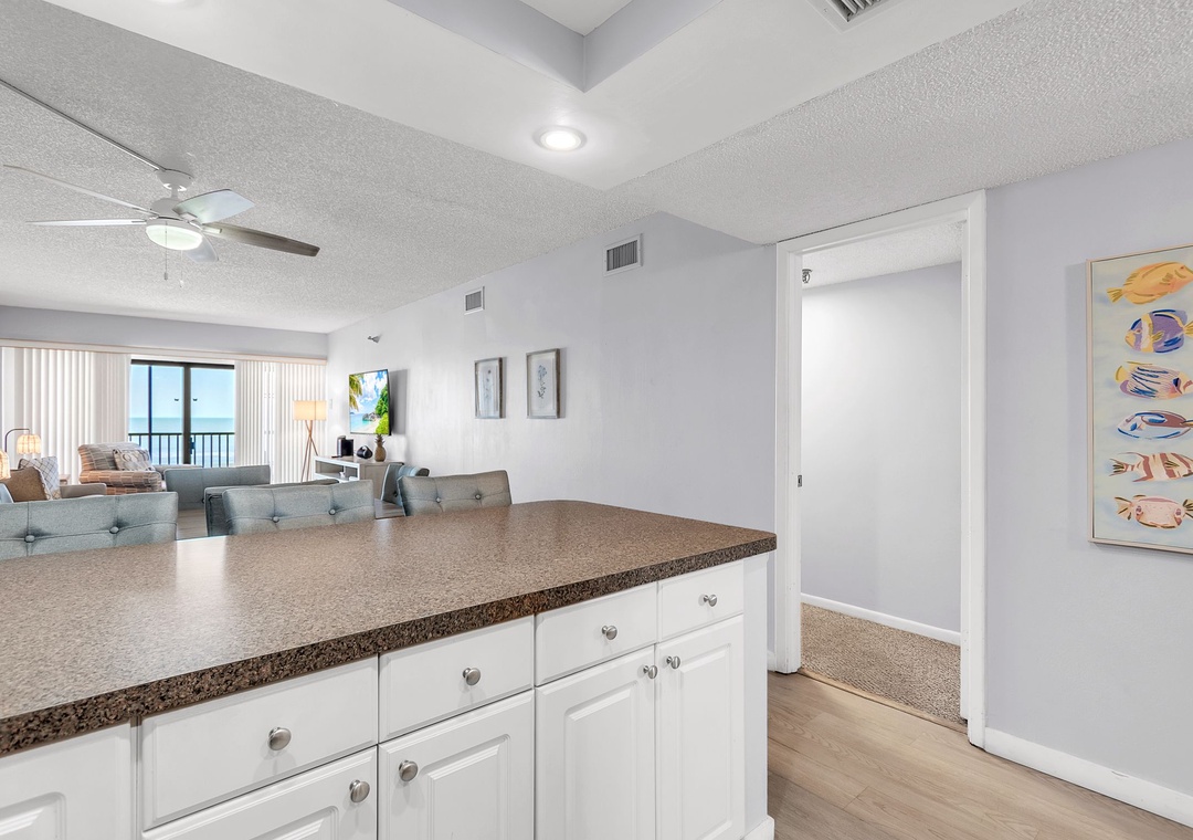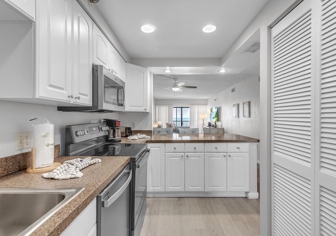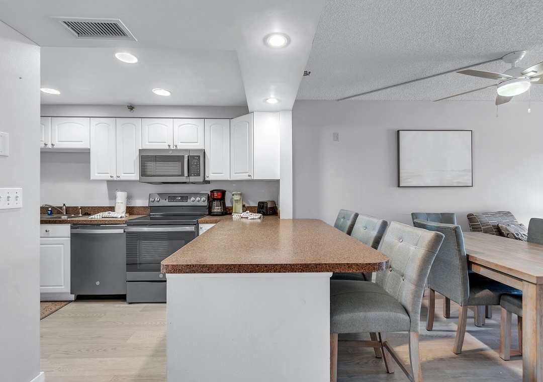 Unit was very clean. Appreciated the suitcase valet/table for my suitcase in the main bedroom, it made packing/unpacking so much easier. Wonderful view from main bedroom and living room. Unit is very large, comfortable sofas, good beds, washer dryer (bring your own detergent), kitchen table, tvs, wifi, great closet space, 2 nice sized bathrooms, great seating on screened in balcony, that had superb direct view of ocean, full kitchen with pantry. Offered coffee maker but no coffee. Quality white sheets and an extra set. Nice bath towels but no beach towels. No beach chairs, but there were rental chairs on beach and then non-rental lounge chairs, palapa and bench seating on beautiful brick paver area right before you get to the beach. Property very well kept. Stairways, elevator, garage, walkways all clean. Really appreciated the option of stairways (there were 3 of them) or an elevator. They were kept locked which made me feel safe. Pool with gate locked too, clean pool bathroom also locked. Entry off of beach to garage and property had locked gates too. Loved the two locations to enter from beach offered brick pavers to foot and regular showers. Also loved the paver area mentioned above, where it had palapas for shade over tables and sun lounger chairs. Loved the location in proximity to Sweet Brewnette and Caddy's. Appreciated the quick responses when I was preparing to arrive. Some of the other renters did not pay attention to non-smoking rules or respect the request to keep sand toys and chairs off of hallways and in the garage, but that was not the resorts fault. It's just "people". There was construction going on 2 doors down from my unit 305, but they were respectful of time of day and kept vacuuming their mess from the walkways. The garage parking was nice but has a very low clearance. Didn't look like it could accommodate tall trucks. Really enjoyed this property and would like to come back again.- Reviewed On: 10/8/2021