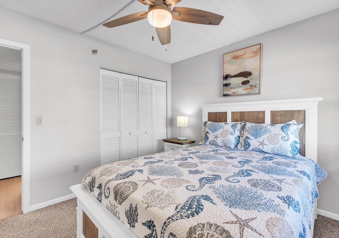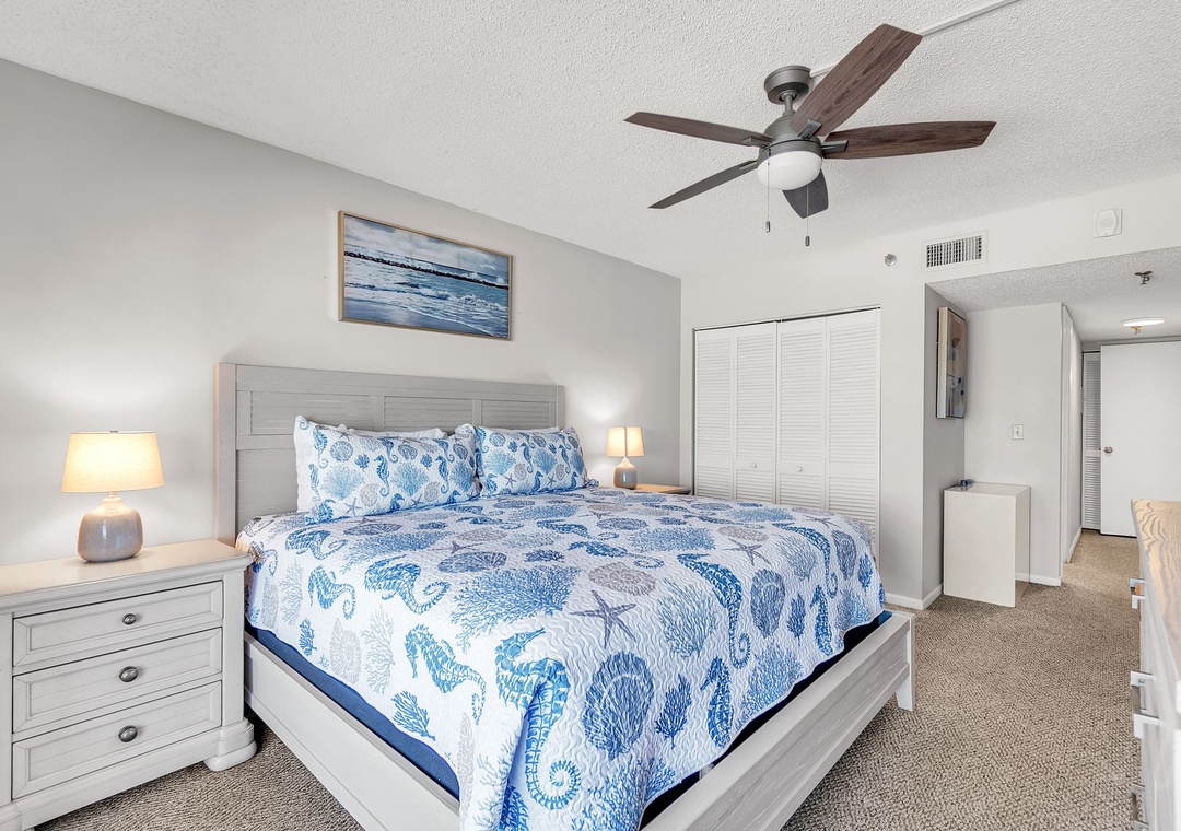 Rating Details: The property manager was very helpful. The vacation rental was spotless. I was very happy with the location. I was very satisfied with the condition of the vacation rental. Overall, I recommend this vacation rental. Reviewer Comments: Overall great experience. I stayed for 6 weeks and loved every minute of it. Resort Rentals team was helpful and easy to work with, location was perfect, and the unit was in great condition. Lovely furniture, well equipped kitchen, mostly updated, and clean. Amazing view from living area and master bedroom, lots of closet space, and well equipped with linens, fans, and amenities. Also within walking distance of many shops & restaurants. Best of all was that the beach was not overcrowded and is very well maintained. The building has a nice, decent-sized pool and a veranda with lots of lounge chairs if you prefer not to be on the sand. If I knew I would be working from home again next year, I would have rebooked for next year.- Reviewed On: 1/29/2021