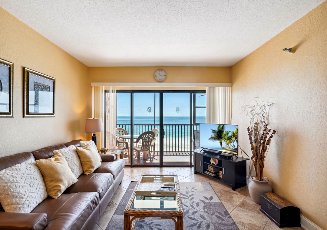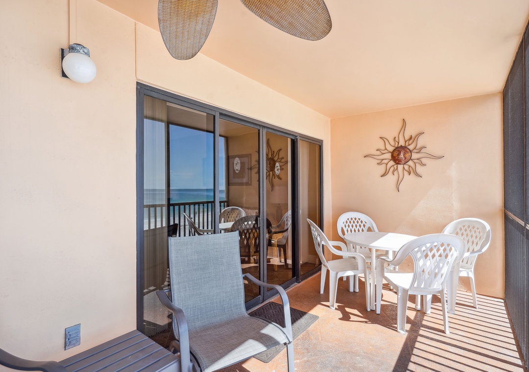 • Spacious screened balcony featuring breathtaking views of the Gulf of Mexico.